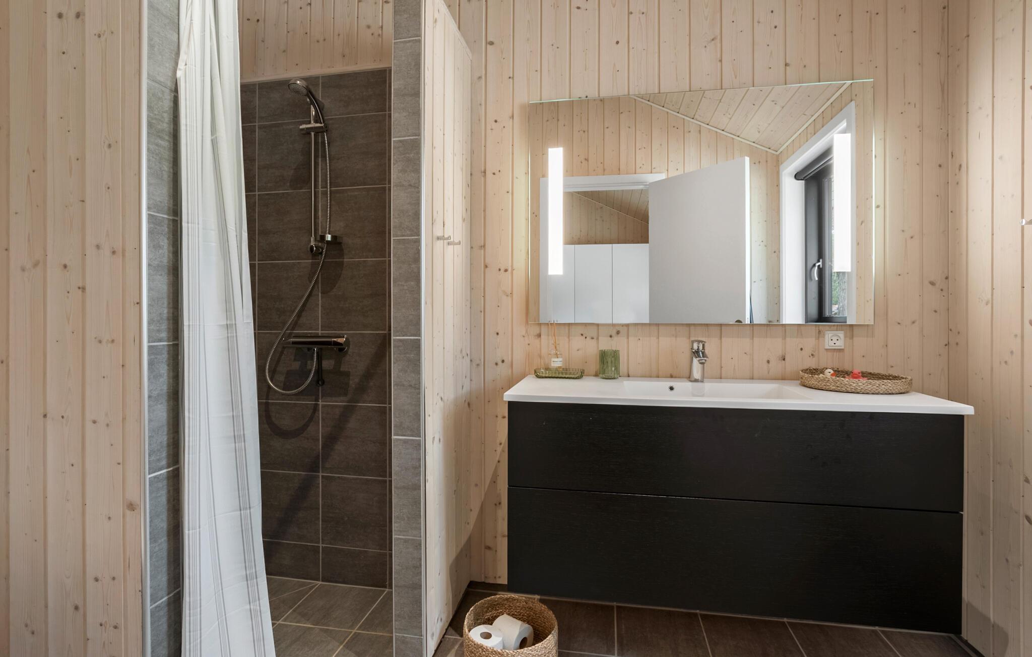 Tilbring dagen udenfor på den store træterrasse langs huset. Slap af på en bænk med en god bog, eller server jeres måltider under åben himmel. Brug grillen til en fælles middag, og lyt til trækronernes sagte susen. Takket være den rolige placering i naturen kan I nyde jeres ferie helt uforstyrret.