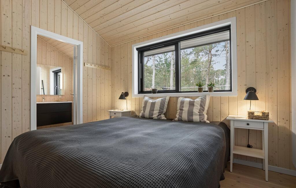 Jeres stilfulde feriehus på solskinsøen Bornholm tilbyder jer et fristed, hvor moderne design forenes med en naturskøn beliggenhed. Omgivet af høje træer kan I nyde afslappede feriedage med hele familien eller med venner, langt væk fra hverdagens stress og jag. Nyd udsigten til skoven fra den åbne opholdsstue med de store vinduespartier. Hyg jer sammen på den rummelige sofa, eller saml jer omkring det lange træbord til fælles måltider. Lav mad sammen i det lyse køkken med de rene linjer og direkte adgang til terrassen. Nyd varmen fra brændeovnen på kølige aftener, eller spil et brætspil i den hyggelige stue.