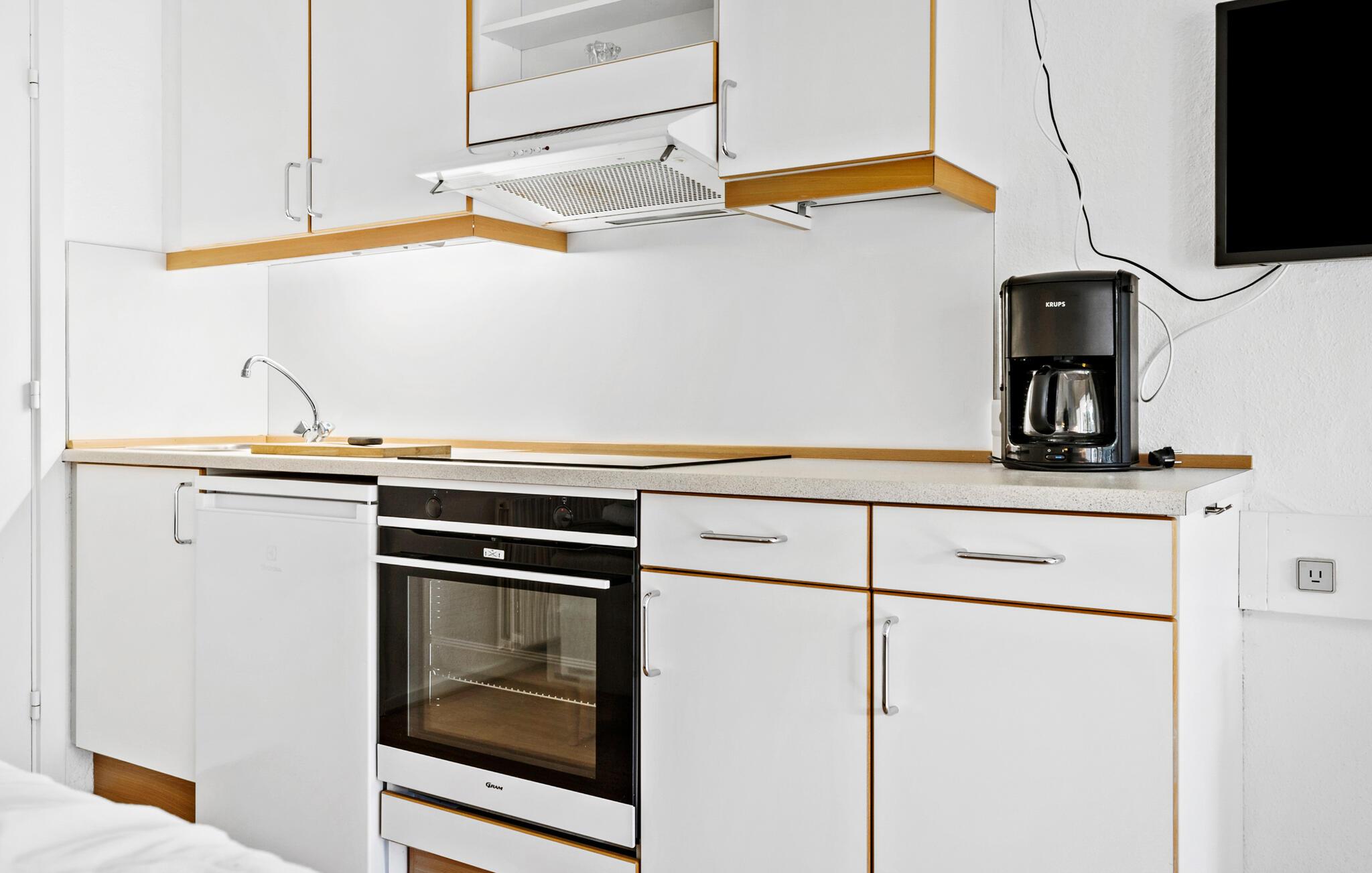 Her kan I lægge hverdagen bag jer og nyde den rolige atmosfære i denne charmerende bolig fuldt ud. Start dagen med morgenmad på balkonen og lad den fredfyldte natur og den friske havbrise omfavne jer. Om aftenen tilbyder den komfortable stue med sin behagelige sofa det ideelle sted til at afslutte dagen i ro og mag. I det moderne køkken kan I tilberede jeres yndlingsretter og nyde dem enten i spiseområdet eller udenfor på balkonen, afhængigt af vejret.
