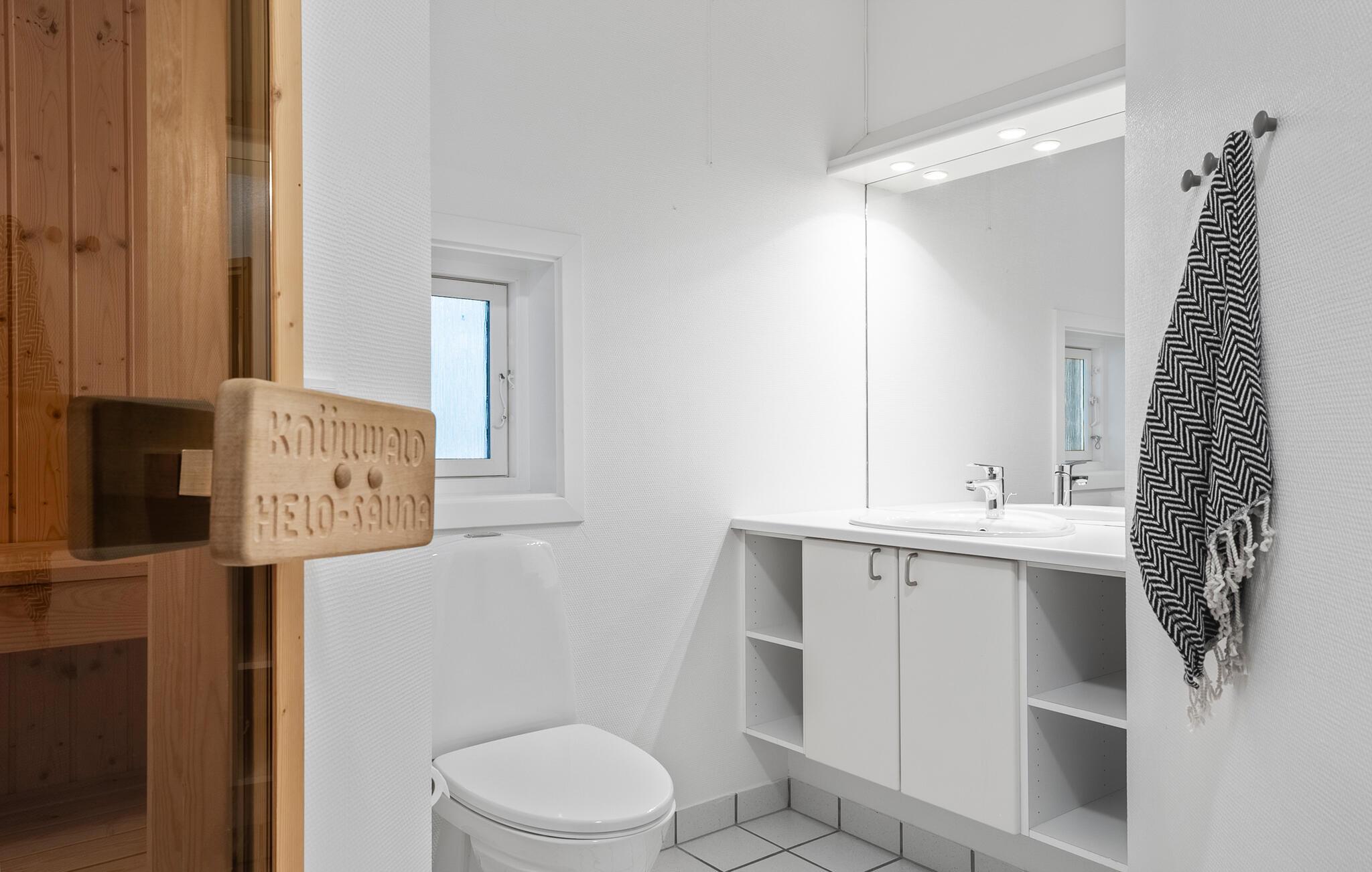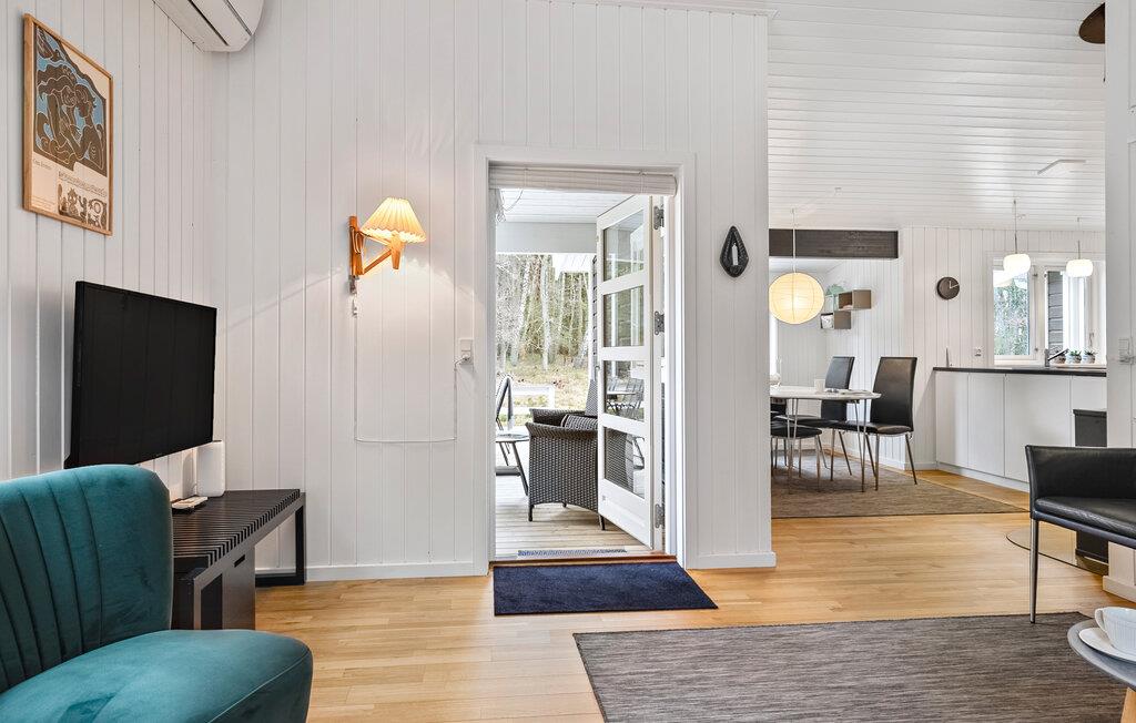 Jeres velholdte og hyggeligt møblerede sommerhus venter jer midt på en rolig naturgrund. Tilbring afslappende dage med familien og nyd den nære beliggenhed til stranden. Huset er noget særligt med sit lyse og moderne interiørdesign. Brug den åbne stue og spisestue til fælles øjeblikke, og tilbered måltiderne i det moderne køkken. Det hyggelige sofahjørne lægger op til at slappe af i denne venlige atmosfære. Saunaen på stedet tilbyder en beroligende varme, ideel til afslapning efter en dag i den friske luft. Der tilbydes også underholdning. Snup et spil bordtennis med hele familien.