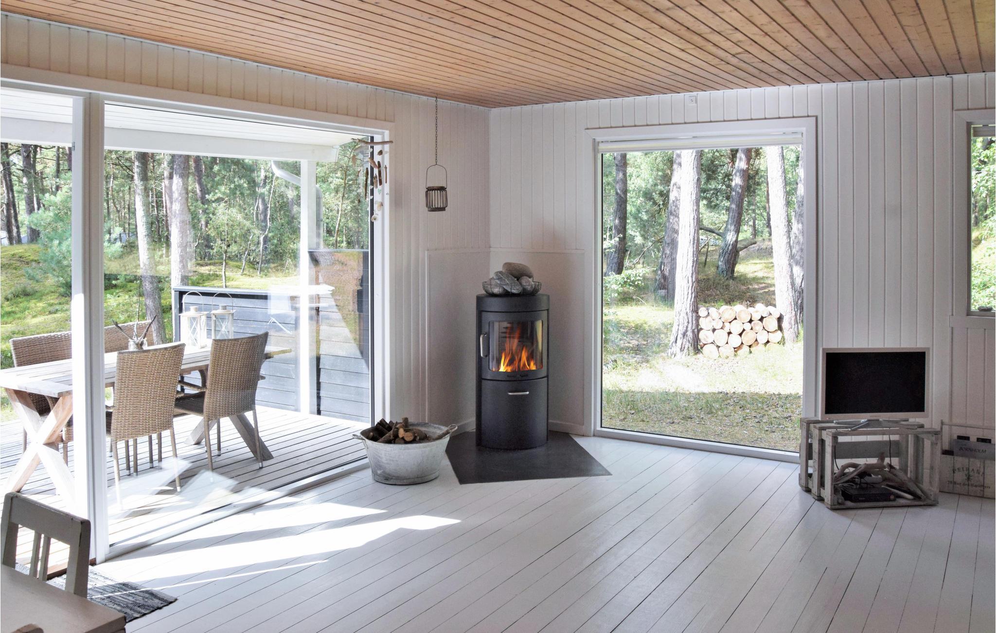 Velkommen til et flot og indbydende træsommerhus med lyse trægulve og en rar stemning overalt i huset. Dette nydelige sommerhus ligger i et populært område med store naturgrunde og smuk natur. Begynd dagene med en kop kaffe i den skønne spisekrog, hvor I kan kigge ud på naturgrunden med høje fyrretræer. Tænd op i brændeovnen på en kølig dag og sæt jer med en god bog eller find sammen om et brætspil. Fra stuen har I udgang til en skøn træterrasse, hvor I virkelig kan nyde ferien i rolige omgivelser i de nydelige havemøbler.