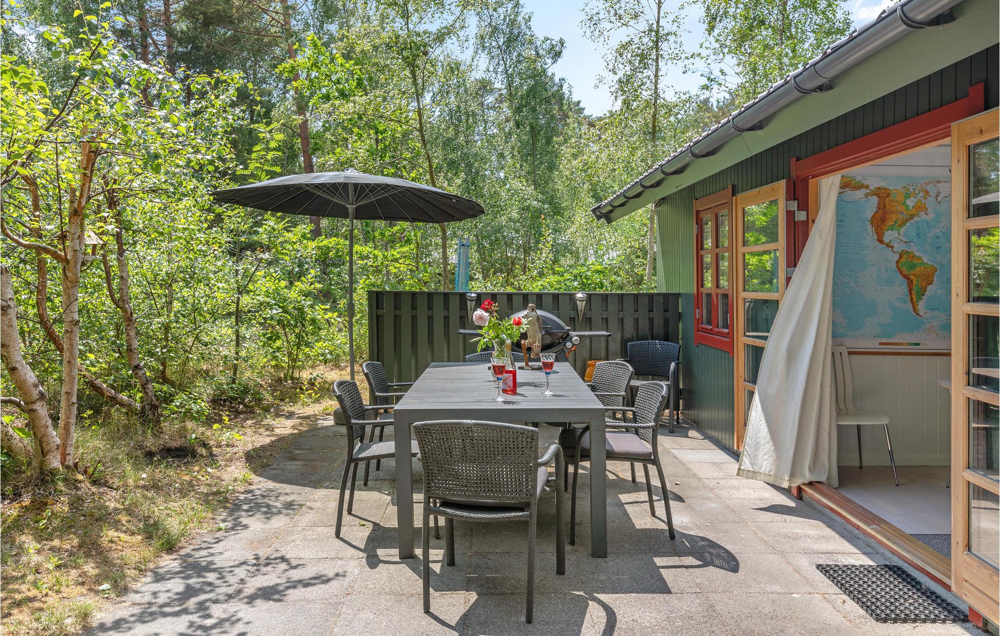 Hyggeligt og skønt beliggende feriehus 2. række til dejlig sandstrand. Huset ligger i gå afstand til een af de bedste sandstrande på øen, og som en del af et større feriecenter med ca. 50 feriehuse. Området er meget børnevenligt med bl.a. fælles legeplads, boldbane og udendørs swimmingpools. Dette hyggelige feriehus er pænt indrettet, og fra stuen er der direkte adgang til en dejlig terrasse hvor I kan nyde ferien i de nydelige havemøbler. Trænger I til en tur i havet, så er det bare at iklæde sig badetøj og et håndklæde over skulderen. Er I til motion, så er en travetur langs stranden en absolut nydelse for hele familien. I fællesbygningen er der bordtennisrum, fælles vaskerum mod betaling og internetadgang. Der er både en børne- og en voksen swimmingpool (udendørs) tilknyttet Dueodde Ferieby, og disse udendørs pools er opvarmet i perioden ca. 15. juni - ca. 1. september.