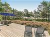 Skønt sort bjælkehus i 1. række ved Dueoddes vand med havudsigt og store terrasser.