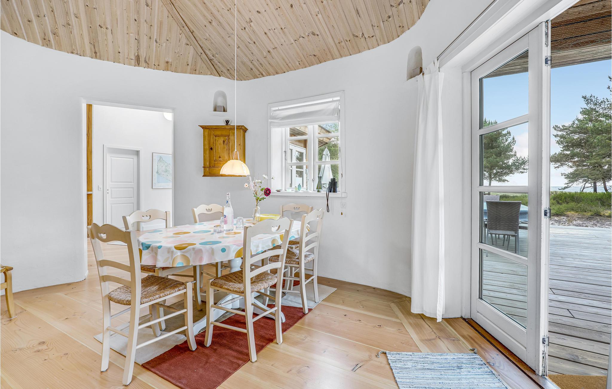 Unikt beliggende træsommerhus i 1. række til dejlig sandstrand. Fra dette charmerende og hyggelige sommerhus har I direkte adgang til stranden, og en tur i Østersøen kan varmt anbefales. Sommerhuset er i 2019/2020 ved at blive udvidet med en privat afdeling, der ikke indgår i udlejningen, men der bygges ikke i udlejningssæsonen. Dette unikke sommerhus er meget charmerende og rustikt indrettet med runde vægge og højt til loftet i stueområdet. Hyggeligt åbent køkken og 3 mindre soveværelser. Velindrettet badeværelse med lille men hyggelig sauna. Fra husets meget hyggelige stue er der adgang til en lille hems. Der er udgang til en dejlig træterrasse fra stuen og skøn udsigt til havet og den pragtfulde bornholmske natur. Egen sti til stranden. Husets størrelse gør det velegnet til 4 personer, hvis ferien skal nydes optimalt. Dette unikke sommerhus er ganske enkelt en perle - dels på grund af den fantastiske beliggenhed og dels som følge af sin helt egen stil og arkitektur. Området er velegnet til cykel- og vandreture, og der er heller ikke langt til det populære fiskerleje, Snogebæk, hvor I har gode indkøbsmuligheder og attraktive småbutikker og restauranter.