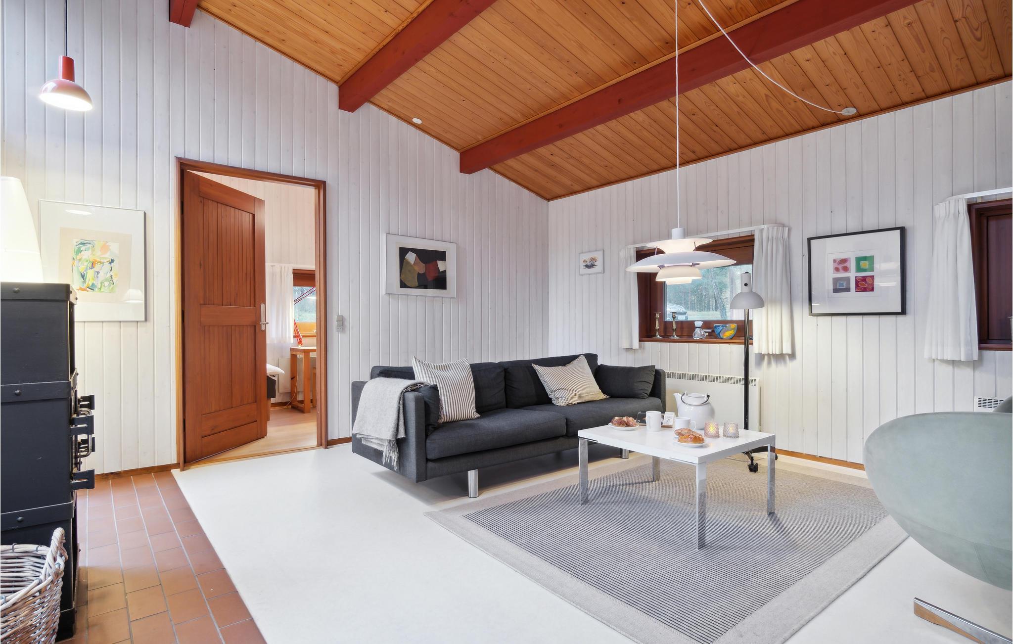 Husets hjerte er den hyggelige og smagfuldt indrettede opholdsstue, hvor I kan se film, høre radio eller musik, hyggesnakke i komfortable møbler og om efteråret eller vinteren nyde varmen og hyggestemningen fra brændeovnen. I det åbne, veludstyrede køkken med spiseplads er det en leg at tilberede dejlige feriemåltider. Husets badeværelse har vaskemaskine og behagelig gulvvarme.