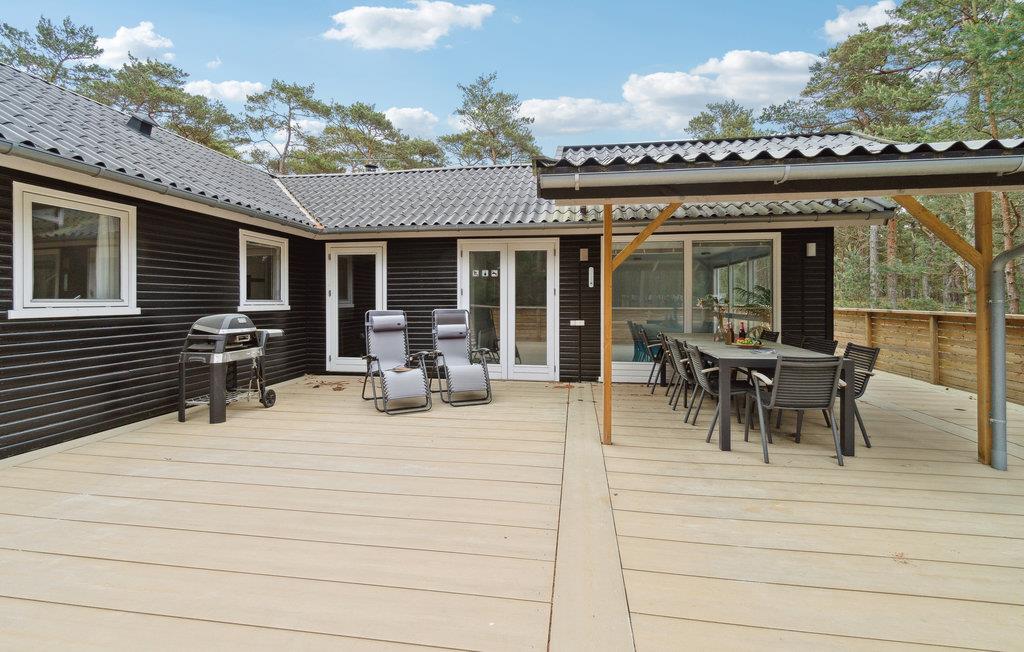 Til huset hører to træterrasser - den ene delvist overdækket - med havemøbler og elektrisk grill, så I kan tilberede lækre feriemåltider. terrasserne er det perfekte sted at nyde solen og den friske luft med en kop kaffe eller et glas vin. Jeres børn vil elske gyngerne ved huset.