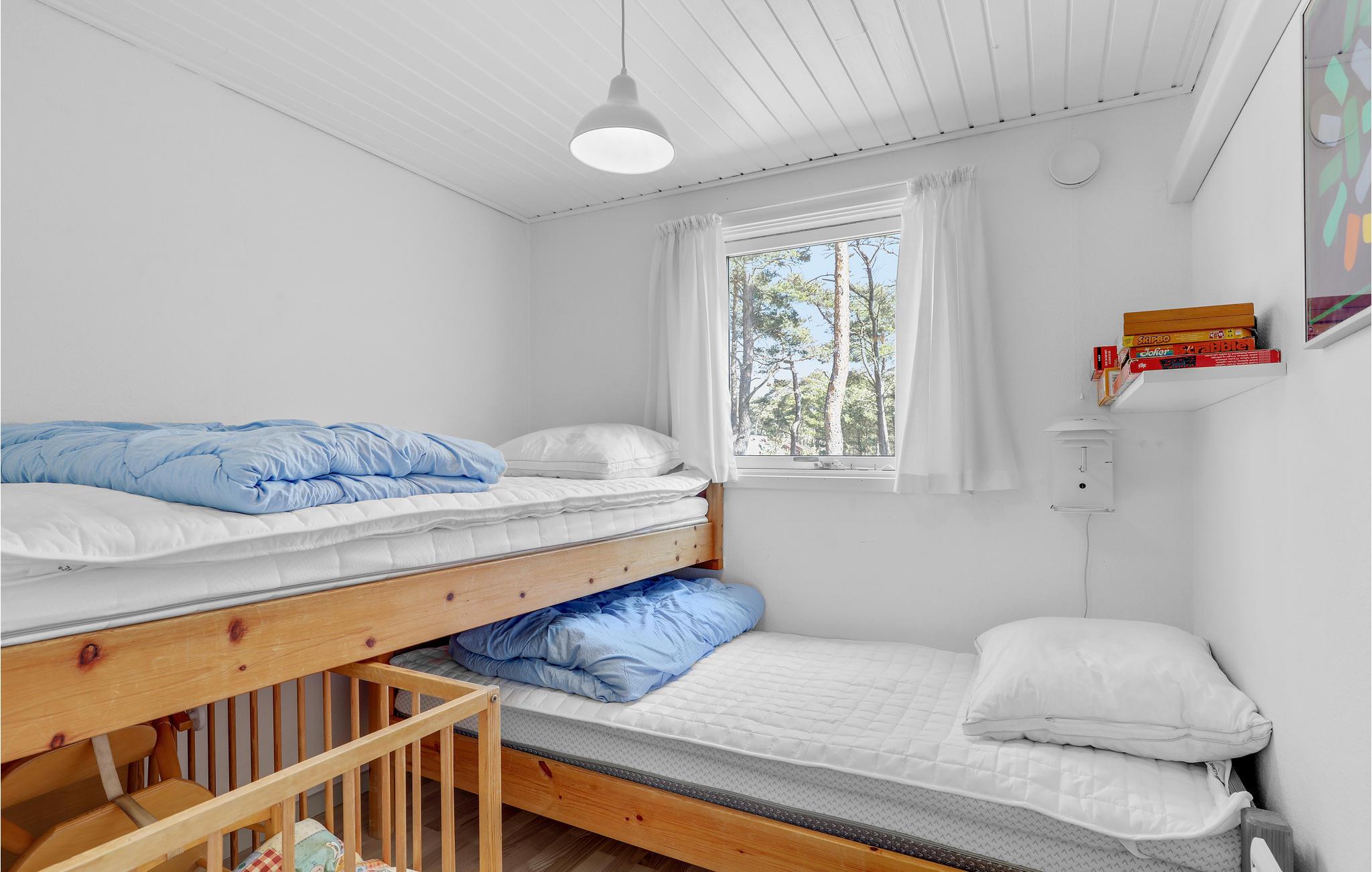 Husets naturlige samlingspunkt er opholdsstuen med spiseplads, sofaarrangement, brændeovn og en veludstyret køkkenafdeling. Her kommer I til at tilbringe mange hyggelige stunder sammen. I kan se fjernsyn, høre radio eller musik, spille spil eller bare hyggesnakke. Et stort højdepunkt ved sommerhuset er den indendørs swimmingpool, hvor I kan plaske rundt i timevis. Af husets fire soveværelser er et af dem udstyret med to enkeltsenge med en længde på 180 cm. Det ene af de to badeværelser har sauna - perfekt efter en dukkert i poolen.