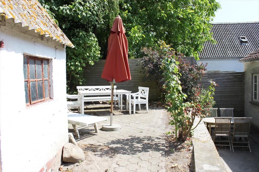Husets lukkede gårdhave er en skøn oase, hvor du kan slappe af i fuldkommen fred og ro. Her er der rig mulighed for at nyde morgenkaffen, mens du lytter til fuglesang og nyder udsigten over de åbne marker. Hvis du er lystfisker, vil du sætte pris på den overdækkede fiskerenseplads, hvor du kan ordne dagens fangst i komfortable omgivelser. Gårdhaven er også et perfekt sted at samle familien til en hyggelig grillaften, hvor du kan nyde den friske luft og den afslappende stemning, som Ærø tilbyder.