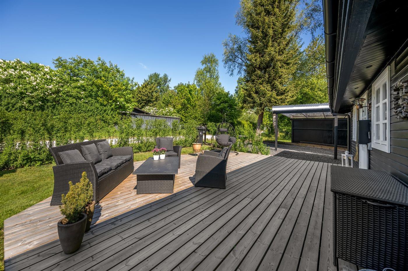 Ferieboligen er beliggende på en 1203 m² stor havegrund. Der er 16300 m til havet. Der er en sø i en afstand af 730 m. Nærmeste forretning er beliggende i en afstand af 3400 m. Der er en golfbane i en afstand af 6700 m. Til ferieboligen hører 50 m² terrasseareal. Gynge. Grill til rådighed. Der er carport til rådighed. Der er installeret stik til opladning af elbil. Type 2 stik. Med 11 kW ladeeffekt. Parkering ved ferieboligen.