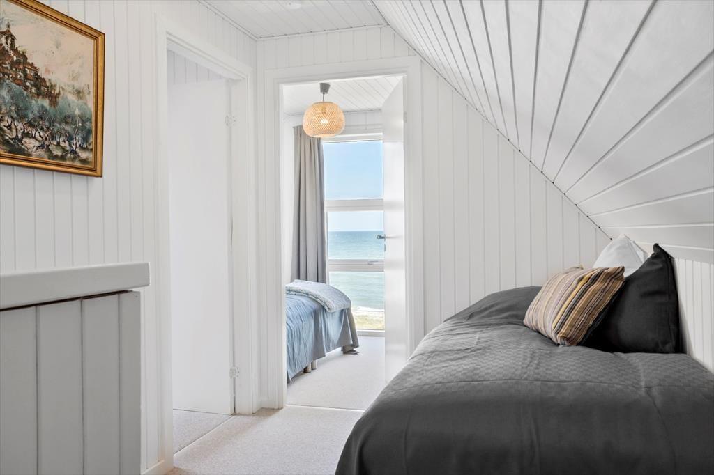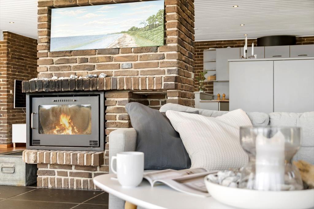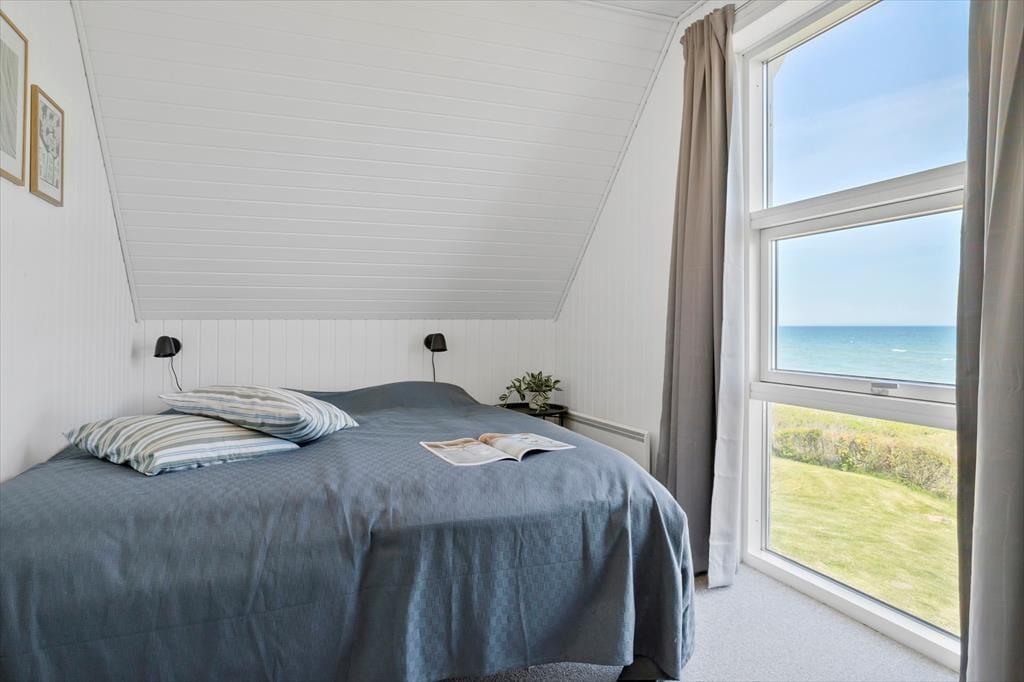 I direkte forbindelse med køkkenet er der spiseplads og to hyggelige sofagruppe, hvor I alle kan samles efter en god dag på stranden og hygge jer med brætspil, puslespil, snak eller måske forsætte med at betragte den flotte havudsigt.