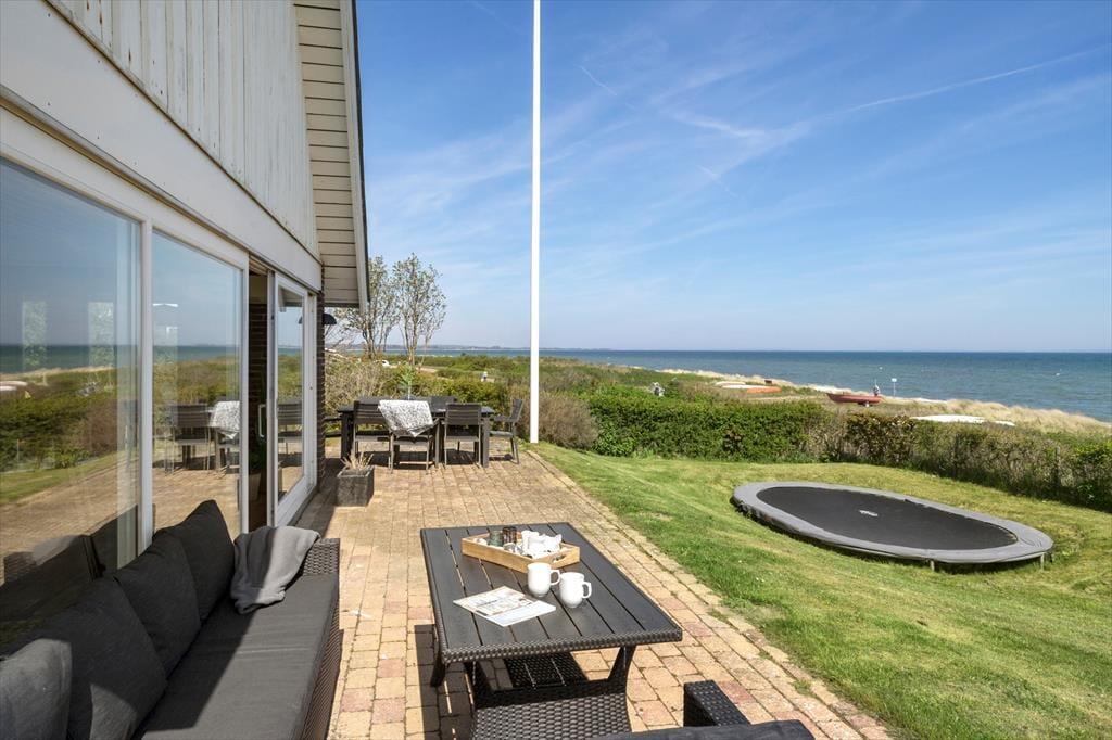 Hvis ikke lige dagen skal bruges her på en af Østjyllands bedste badestrande, så er der mange fine muligheder for at nyde opholde, vejret og hinanden rundt om huset på de fine terrasser med havemøbler.