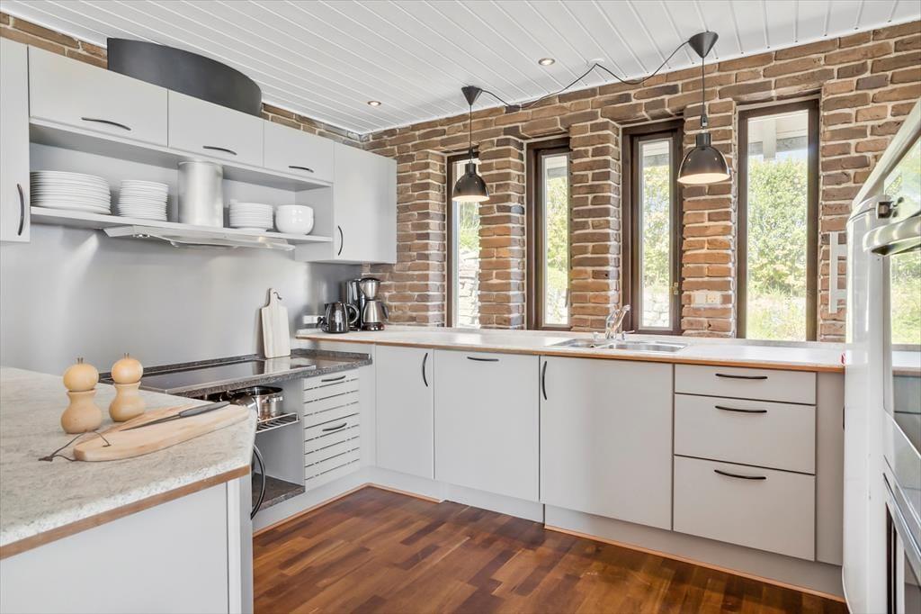 Central placeret i huset er det store køkken/alrum, hvor køkkenet indeholder alt, hvad I har brug for under jeres ophold af faciliteter til lækker madlavning, heriblandt opvaskemaskine, mikroovn, elkedel, kaffemaskine mm. Her kan I dagen lang nyde lysindfaldet og den meget flotte havudsigt.