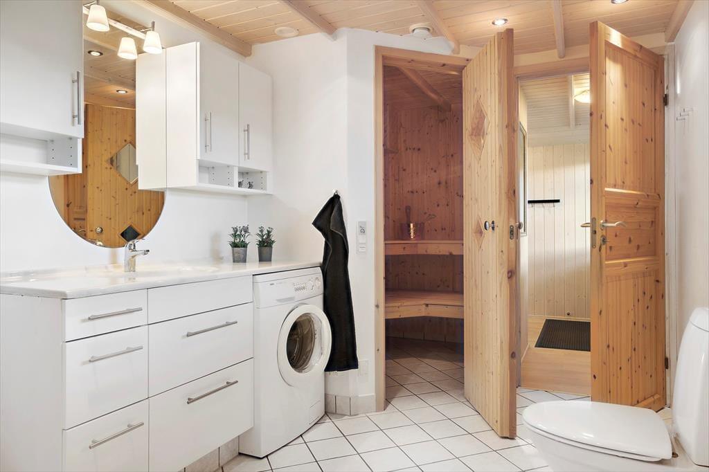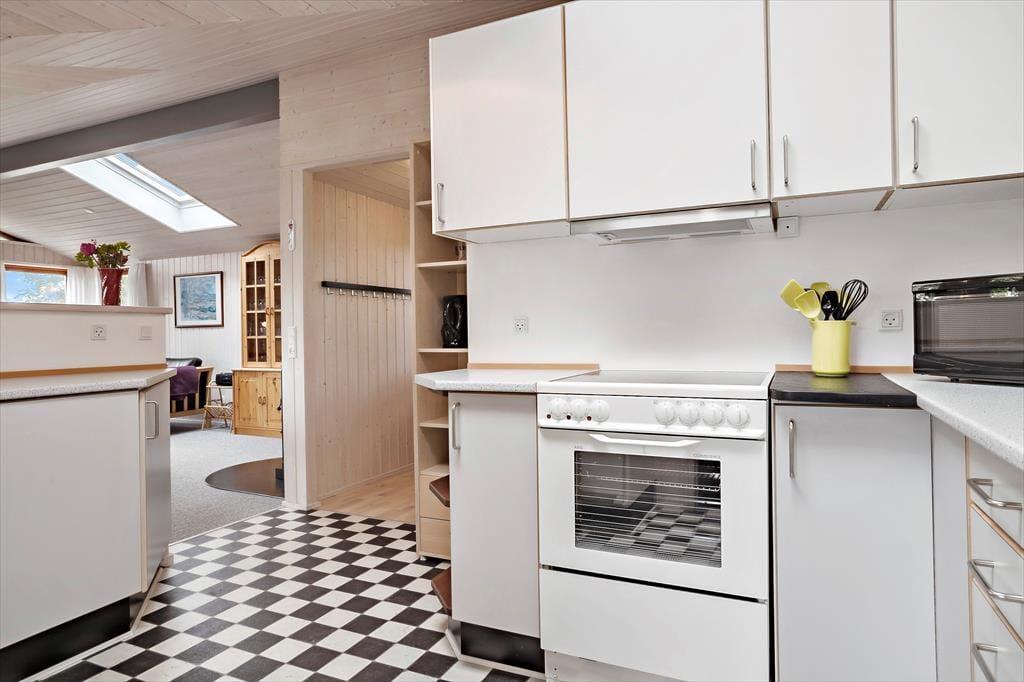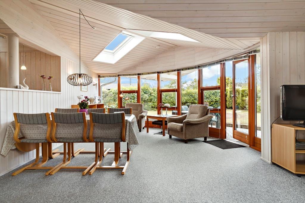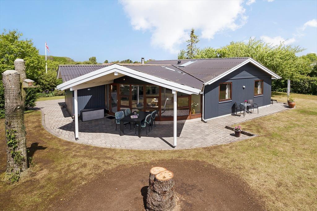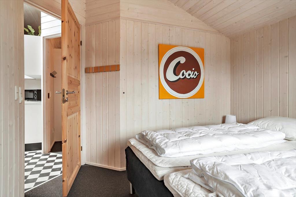 Leder du efter et sommerhus, hvor der er bredde og vidde omkring dig - så har du her fundet det helt rigtige sommerhus. Dette sommerhus er på hele 100 kvm med i alt 6 sovepladser. Huset består af entre som fører ind til husets køkken. Køkkenet er udstyret med alt i hårde hvidevarer inklusiv opvaskemaskine. Køkkenet er i åben forbindelse med den store stue, hvor der er plads til hele familien. Her er siddepladser til alle og et TV med både danske og tyske kanaler. Sommerhuset er også udstyret med internet. På de kolde aftener kan familien lune sin foran brændeovnen i stuen. Husets sovepladser fordeler sig på to værelser med dobbeltseng samt et værelse med 2 enkeltsenge. Badeværelset er med vaskemaskine og sauna.