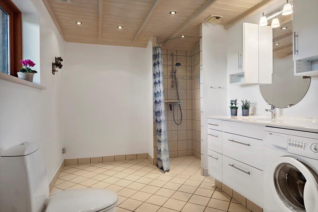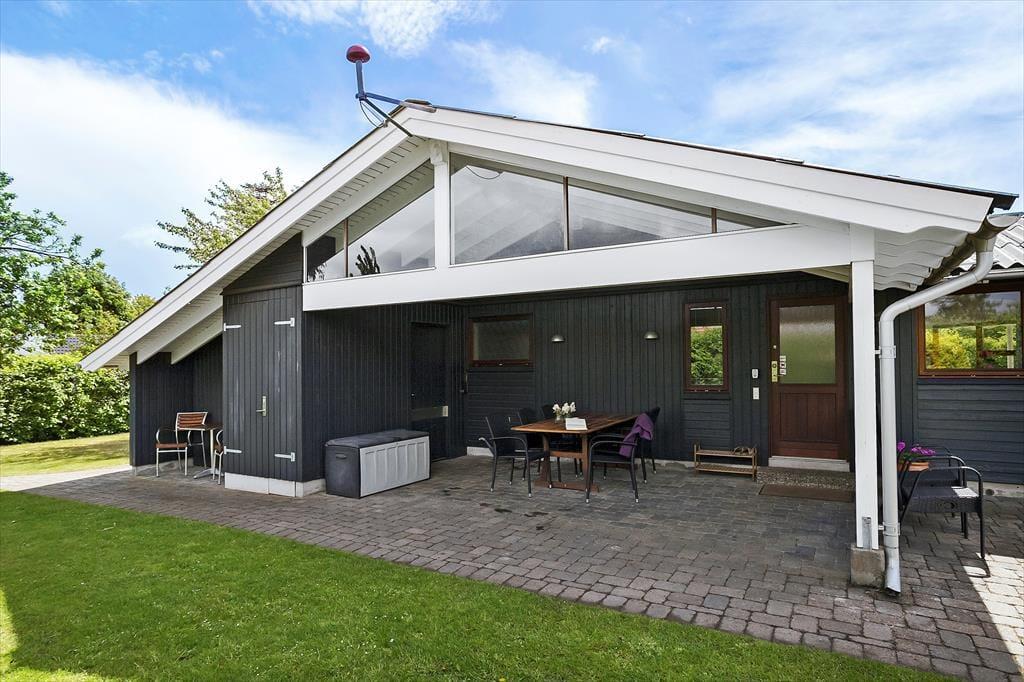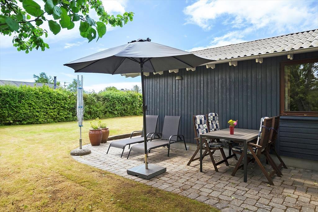 Dette sommerhus har hele 3 terrasser at byde på. 2 af terrasserne er overdækkede på i alt 33 m2 samt 18 m2 terrasse mod øst. Alle 3 terrasser er udstyret med havemøbler. Også en solseng er tilgængelig. Haven efterlader desuden god plads til spil og leg på den store græsplane.