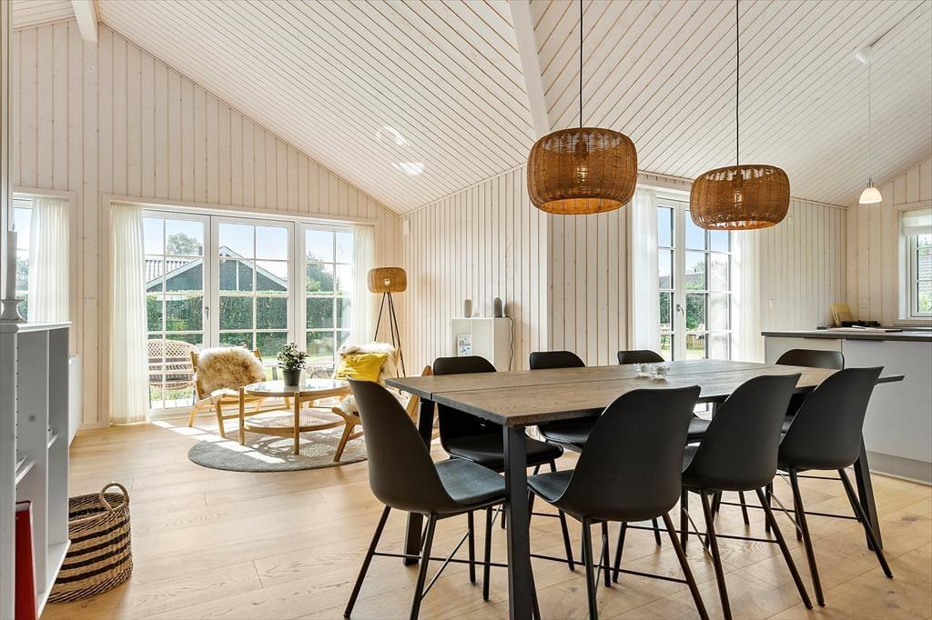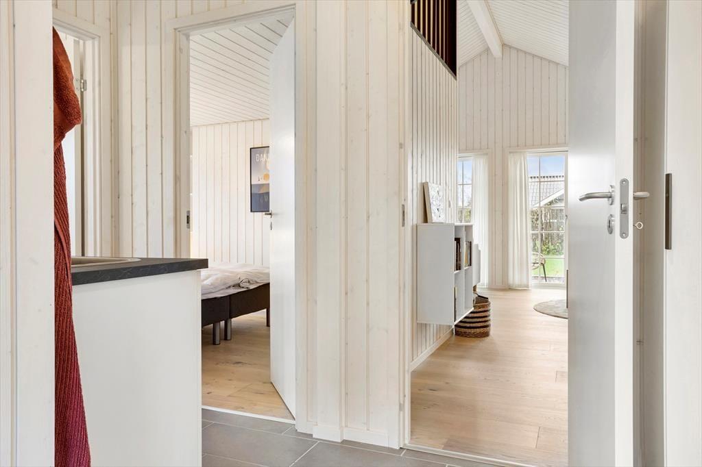 Træd ind i en verden af ny nordisk elegance, hvor hvert rum emmer af hygge og varm atmosfære. De store terrassedøre fra køkken, alrum og stue åbner op for en harmonisk forbindelse mellem indendørs og udendørs ferieliv. Huset byder på tre soveværelser med dobbeltsenge og en hems, hvilket sikrer komfortabel plads til alle. Det lyse og lækkert indrettede badeværelse samt et ekstra toilet fuldender feriekomforten.