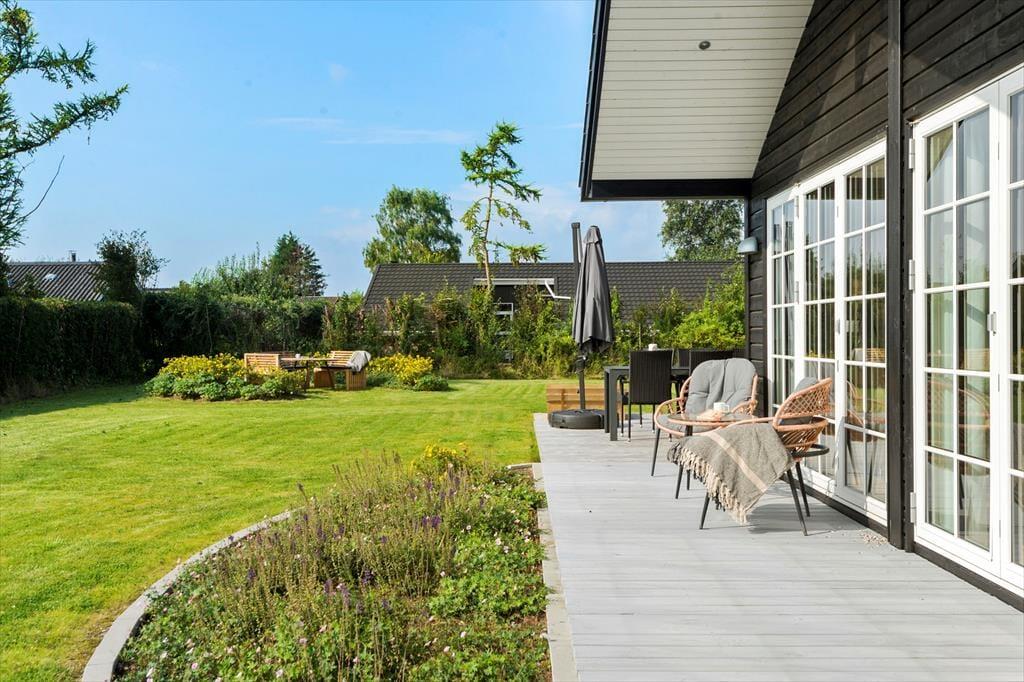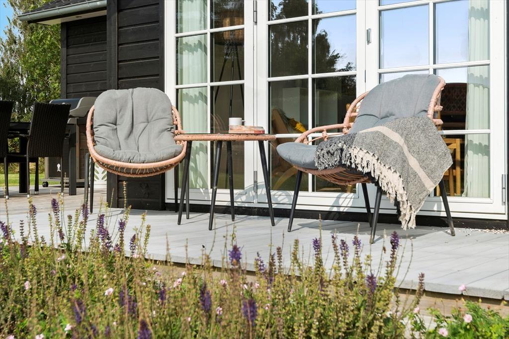 Den store græsplæne indbyder til leg og boldspil, mens de små kan udforske sandkassen. Madlavning bliver en fornøjelse på gasgrillen, og måltiderne kan nydes på den lækre træterrasse. Slå parasollen op og nyd skyggen på de varmeste dage, mens i fornemmer havluften fra havet som blot er 300 meter væk.