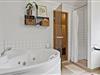 Der er et fint badeværelse i huset med toilet, bruser, spabad, sauna og vaskemaskine, så I kan få vasket badehåndklæderne efter en lang dag på stranden.