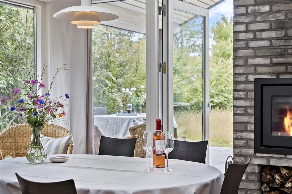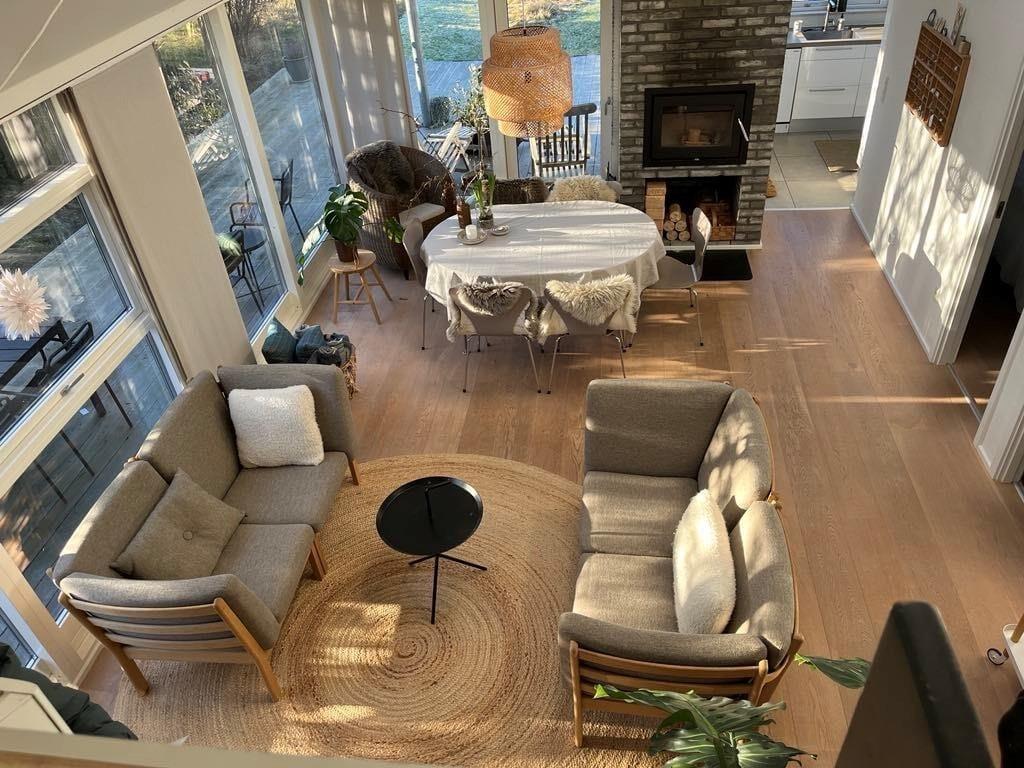 I direkte forbindelse med køkkenet, er der spiseplads og hyggelig sofagruppe, hvor I alle kan samles efter en god dag på stranden og hygge jer med brætspil, puslespil, snak og måske se en film på det store TV, hvor der er mulighed for at streame eget abonnement via huset Chromecast. Der er gratis 100/100 MB-internet.