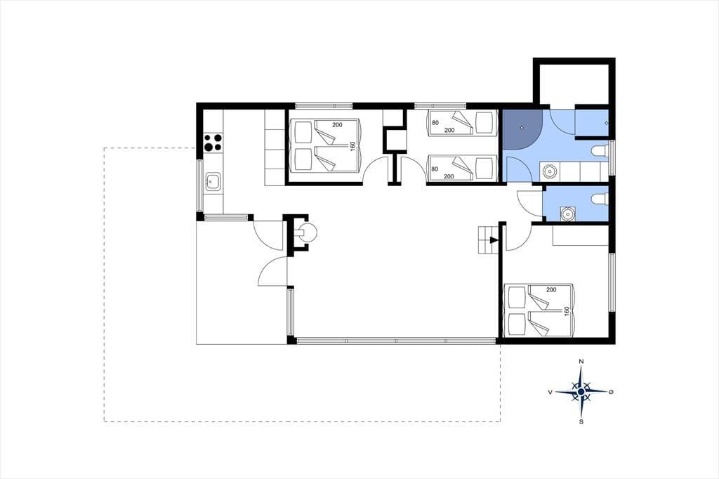 Sovepladserne er fordelt på to rum med dobbeltsenge og et soverum med enkelte senge.