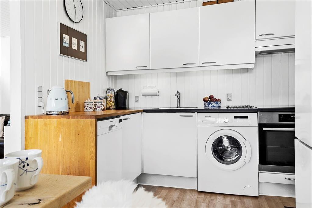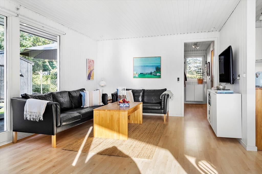 Husets naturlige samlingspunkt er det rummelige køkken/alrum, der også er det første rum, man træder ind i. Her er et dejligt sofaområde hvorfra man både kan se TV eller nyde udsynet til haven. I sommerhuset kan du slappe af til nogle af TV´ets, danske, tyske, norske og svenske tv-kanaler. Derudover er TV´et også udstyret med en Chromecast, der gør det muligt at streame eget indhold fra eksempelvis telefon eller tablet, hertil kan husets tilgængelige WiFi benyttes.