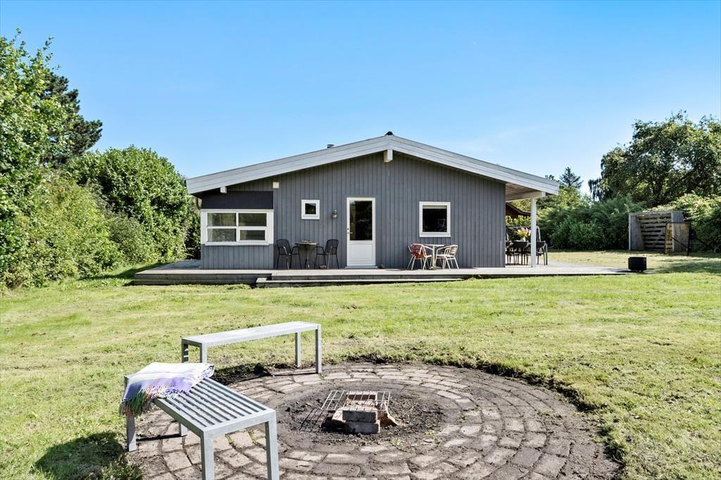 Sommerhuset ligger kun 300 m. fra Dyngby Strand i et fredeligt sommerhusområde.