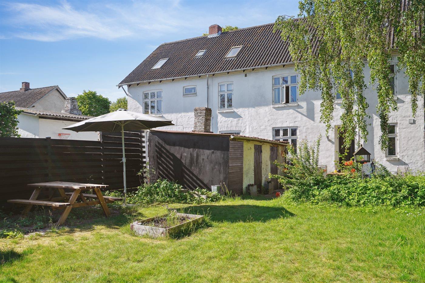 Hyggeligt byhus i Bovlstrup nær Kattegat med terrasse, have og plads til hele familien.