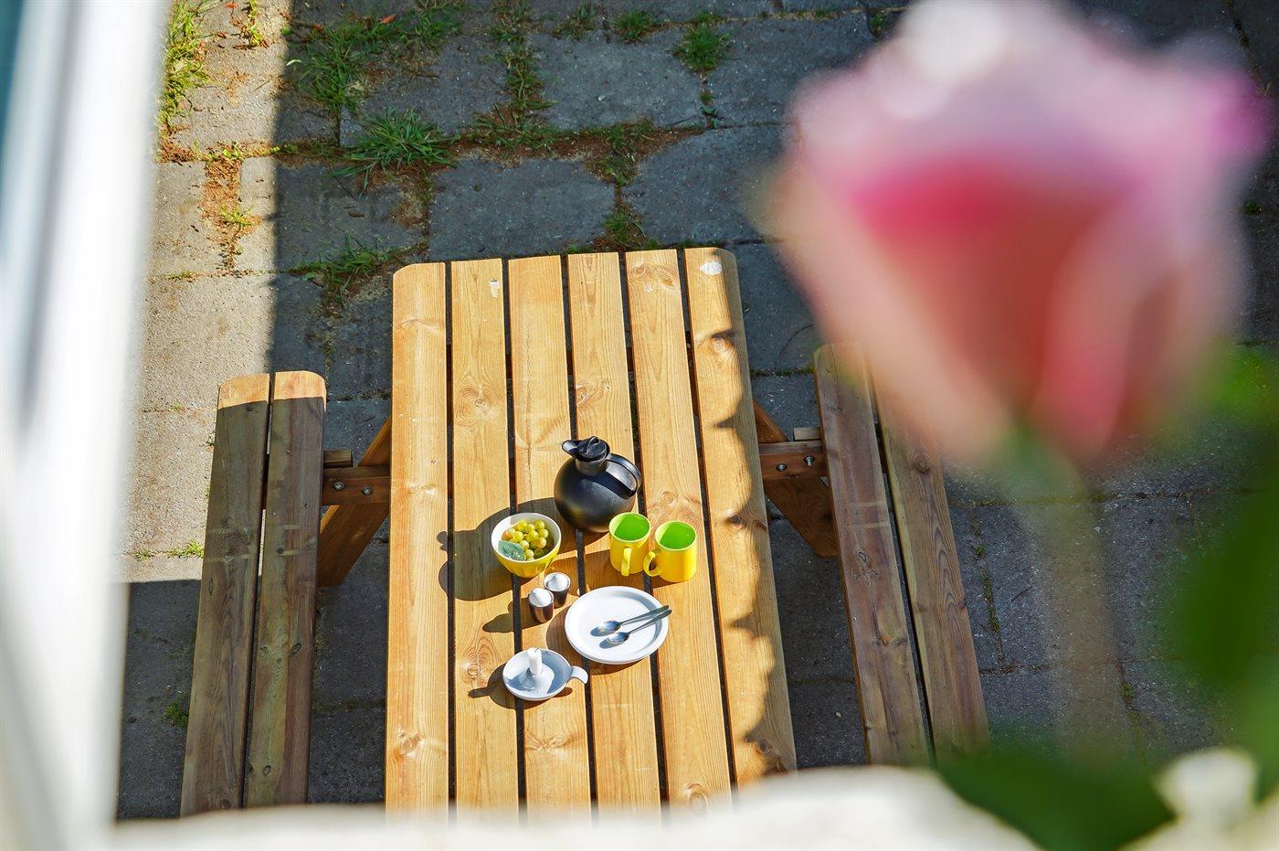 Her er mulighed for at få en god ferie tæt på de fantastiske strande og på Odder til en attraktiv pris i den ellers eftertragtede højsæson. Til huset hører også en lille terrasse og en græsplæne, hvor man kan sidde ganske ugeneret og nyde stilheden.
