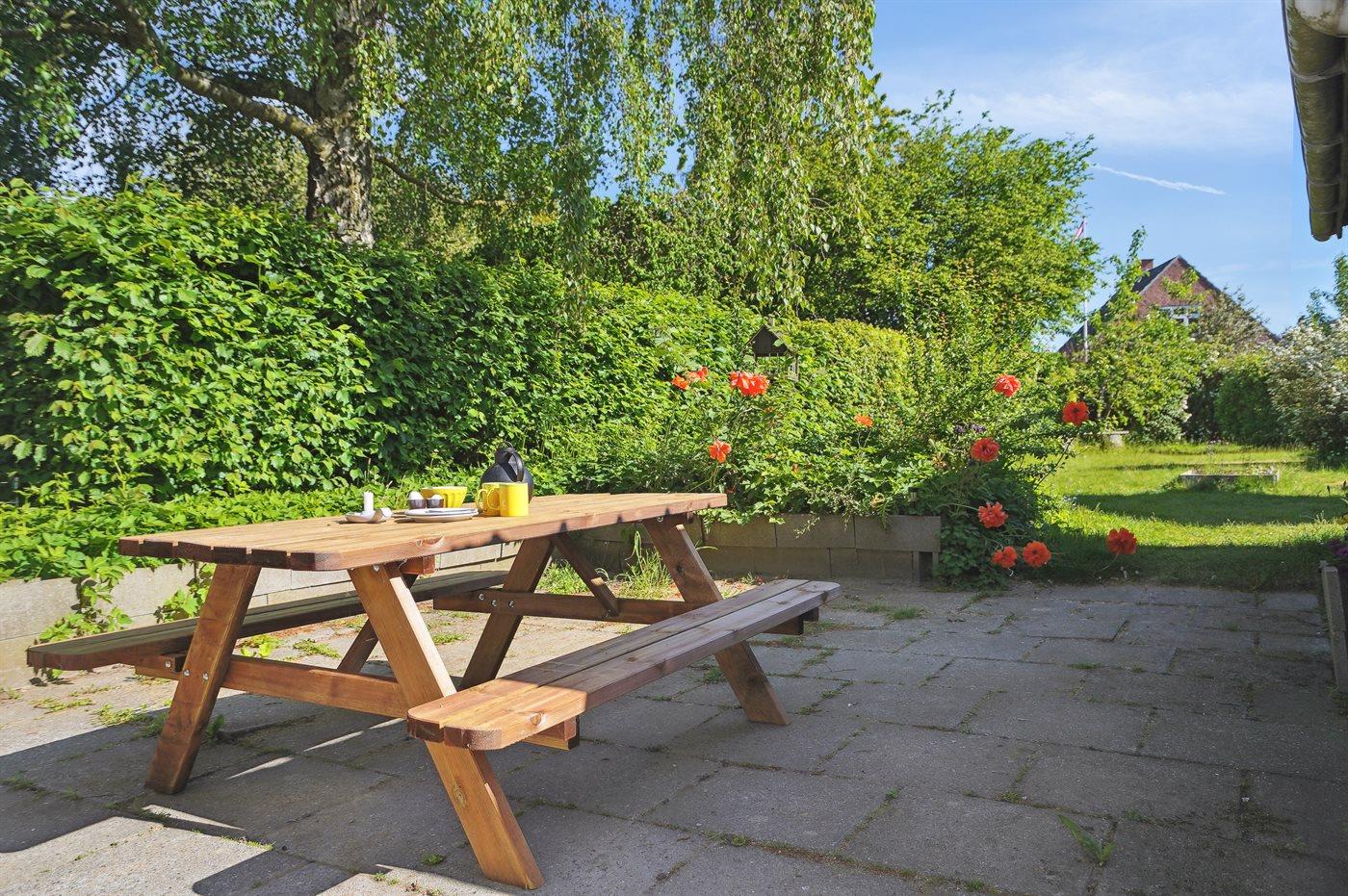 Hyggeligt byhus nær Kattegat med terrasse og have