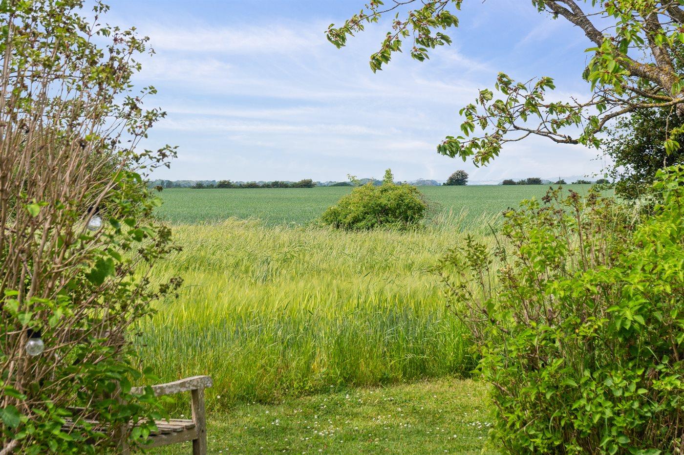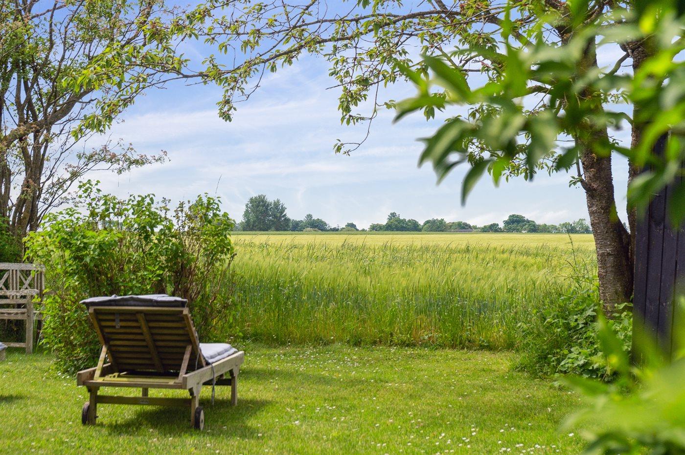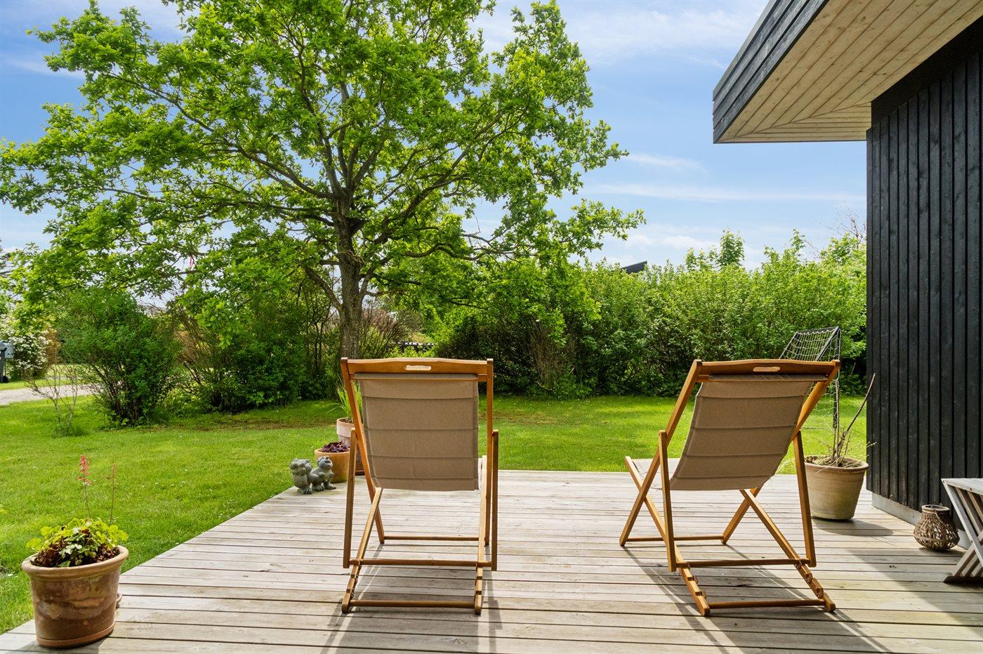 I det attraktive og naturskønne ferieområde ved Dyngby strand, meget tæt på Saksild, ligger dette rummelige og flotte sommerhus fra 2018. Du finder sommerhuset på en dejlig og helt ugenert grund ud imod åbne marker og den dejlige natur. Udover de skønne og delvist overdækkede terrassearealer, som hører til huset, findes der på hjørnet af grunden en "udsigtsbænk", hvorfra der er en flot udsigt over de åbne marker. Her kan du sætte dig med en kop kaffe eller noget køligt og nyde de rolige og smukke omgivelser.