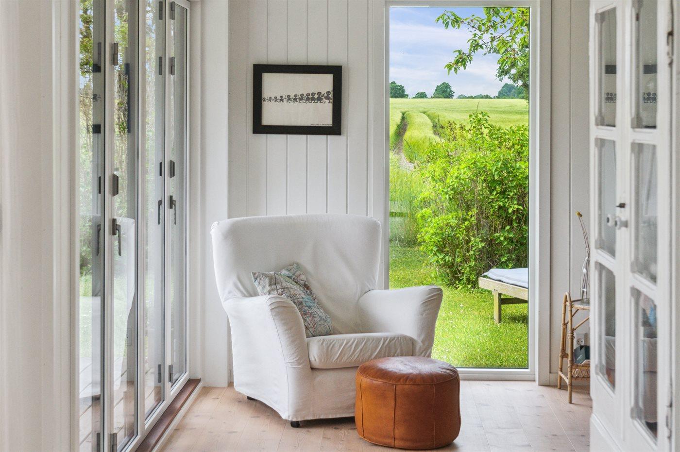 Rummeligt sommerhus fra 2018 i Dyngby med udsigt, tæt på børnevenlig strand og naturskønne omgivelser.