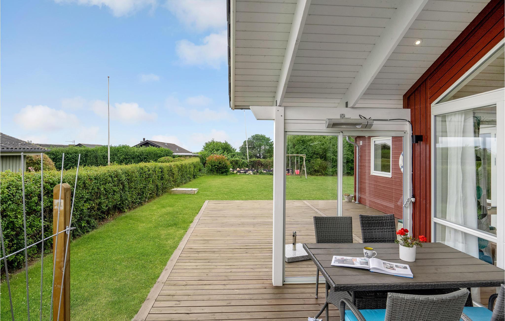 Moderne sommerhus fra 2019 nær vandet i idylliske Dyreborg med terrasse og børnevenlige aktiviteter.