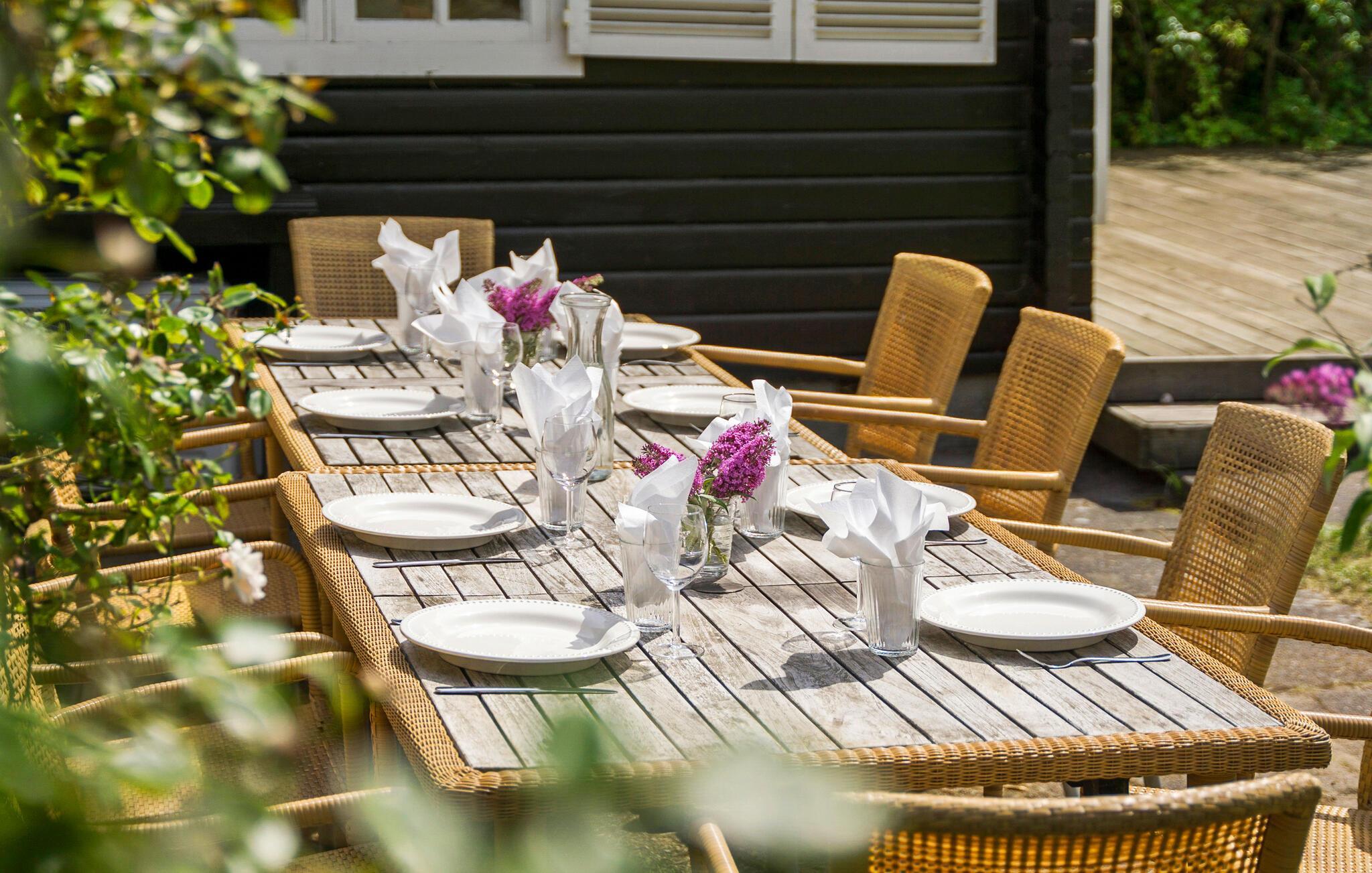 Træsolterrassen med grillplads og liggestole giver jer de perfekte betingelser til hyggelige aftener udendørs. Trænger I til en lur i middagstimerne, er hængekøjen ren luksus.