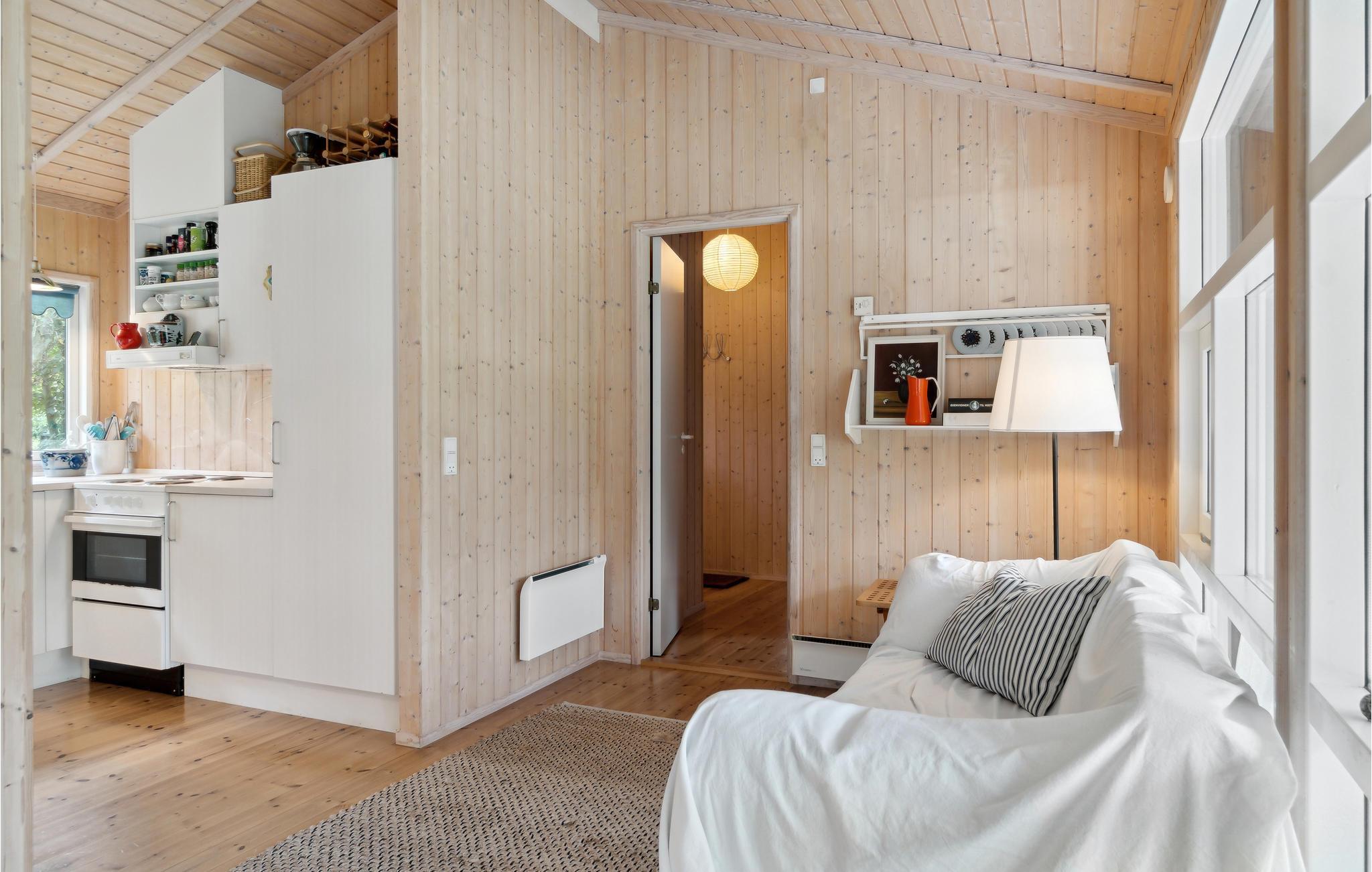 Velkommen til dette tiltalende hus, hvor I kan tilbringe en herlig tid med dem, I holder af. Huset ligger i gåafstand til havet, og med sin hjemlige indretning, som får et varmt udtryk af væggenes træbeklædning, er det det ideelle sted til en afslappende pause fra hverdagen. Uanset om I dyster i spil ved spisebordet om aftenen eller slapper af sammen i sofaen, kan I nyde en smuk udsigt over haven gennem de store vinduer. På kølige dage spreder brændeovnen ikke blot varme, men også hygge. Efter et lækkert måltid fra grillen på terrassen kan I få gang i kredsløbet igen med et spil bordtennis eller fodbold.