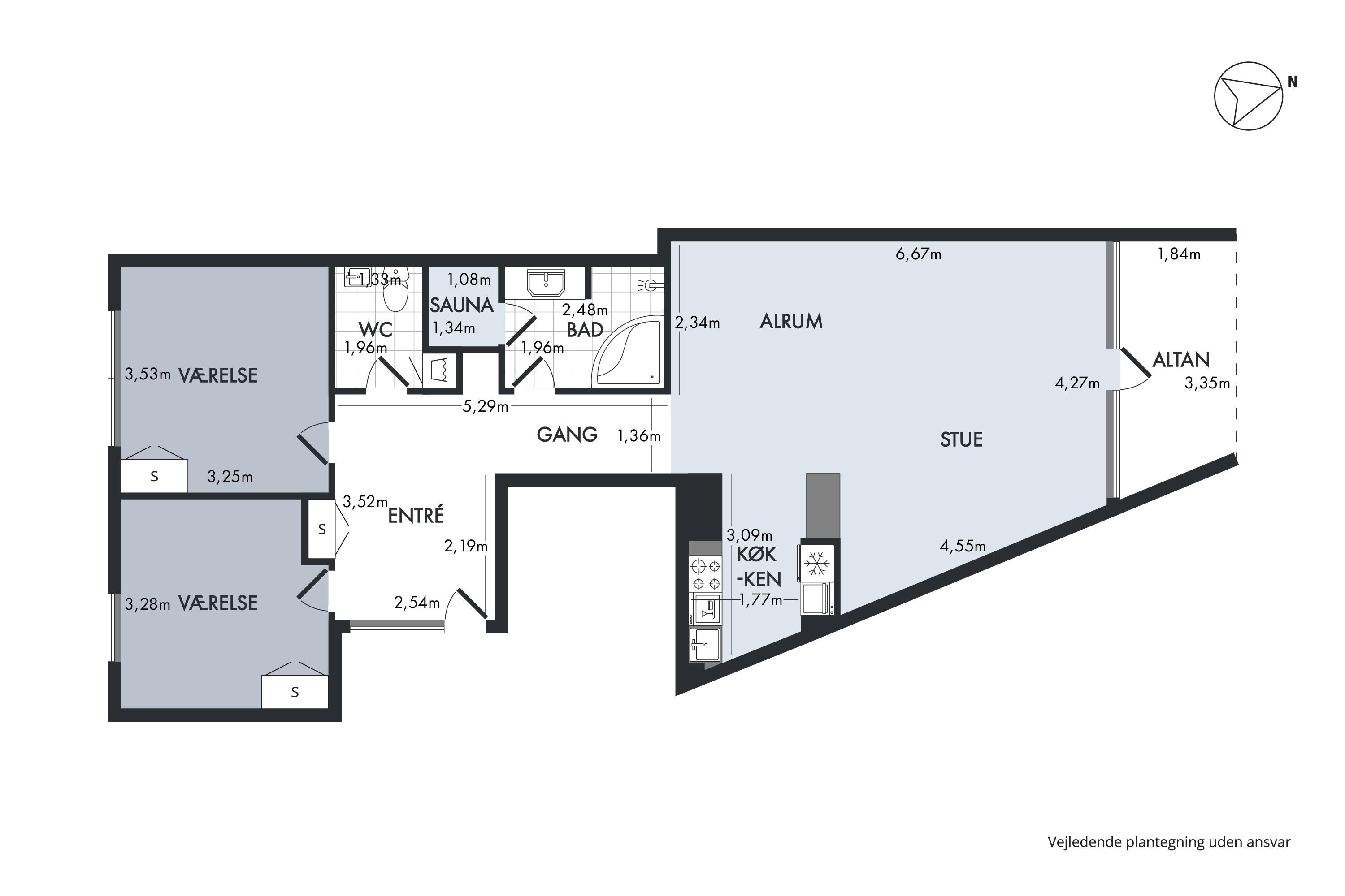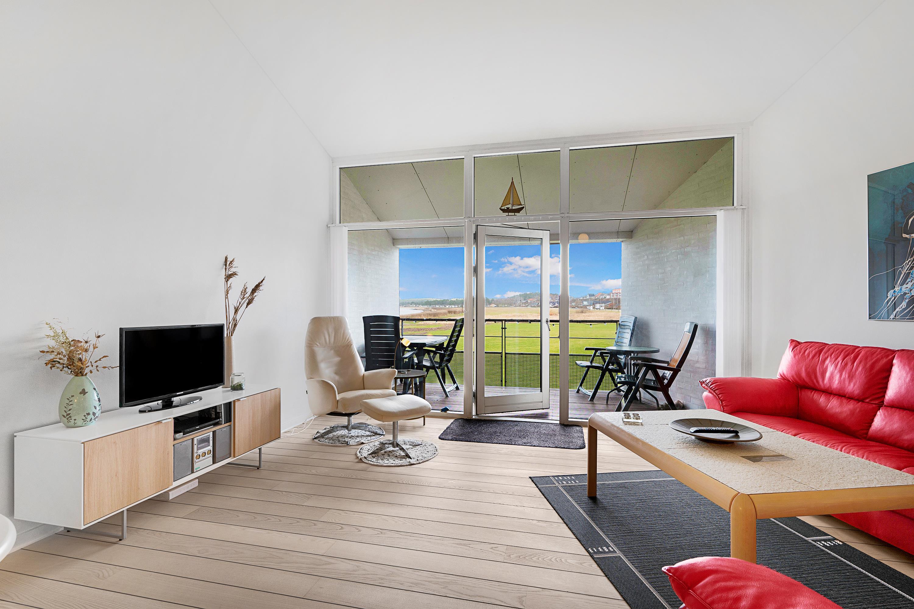 Fra den rummelige entré/fordelingsgang kommer man ind i veludstyret køkken i åben forbindelse med lys opholdsstue med udgang til altan. Her er spiseplads til 6 personer, sofamøblement, TV med danske (inkl. TV2) og tyske kanaler, CD-afspiller og radio. Køkkenet har keramiske kogeplader, indbygningsovn, stort køle-/fryseskab, opvaskemaskine og mikrobølgeovn. Lejlighedens 6 sovepladser fordeler sig på 2 lyse værelser: 1 med dobbeltseng og 1 værelse med dobbeltseng samt køjeseng. Dejligt badeværelse med brusekabine, 1-pers. spa og sauna samt gæstetoilet med bruseniche, vaskemaskine og tørretumbler, begge vådrum med gulvvarme. Der er internetadgang.