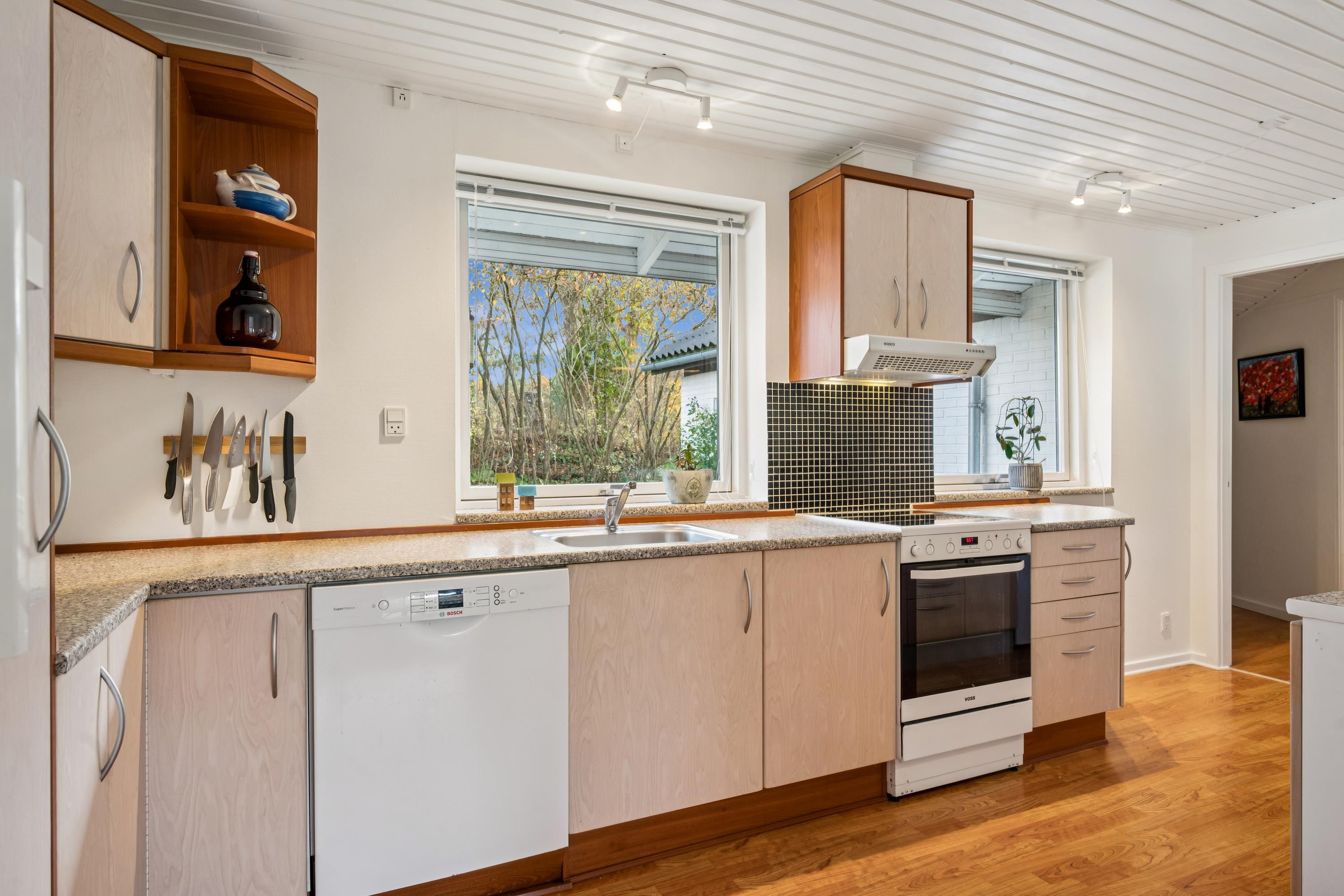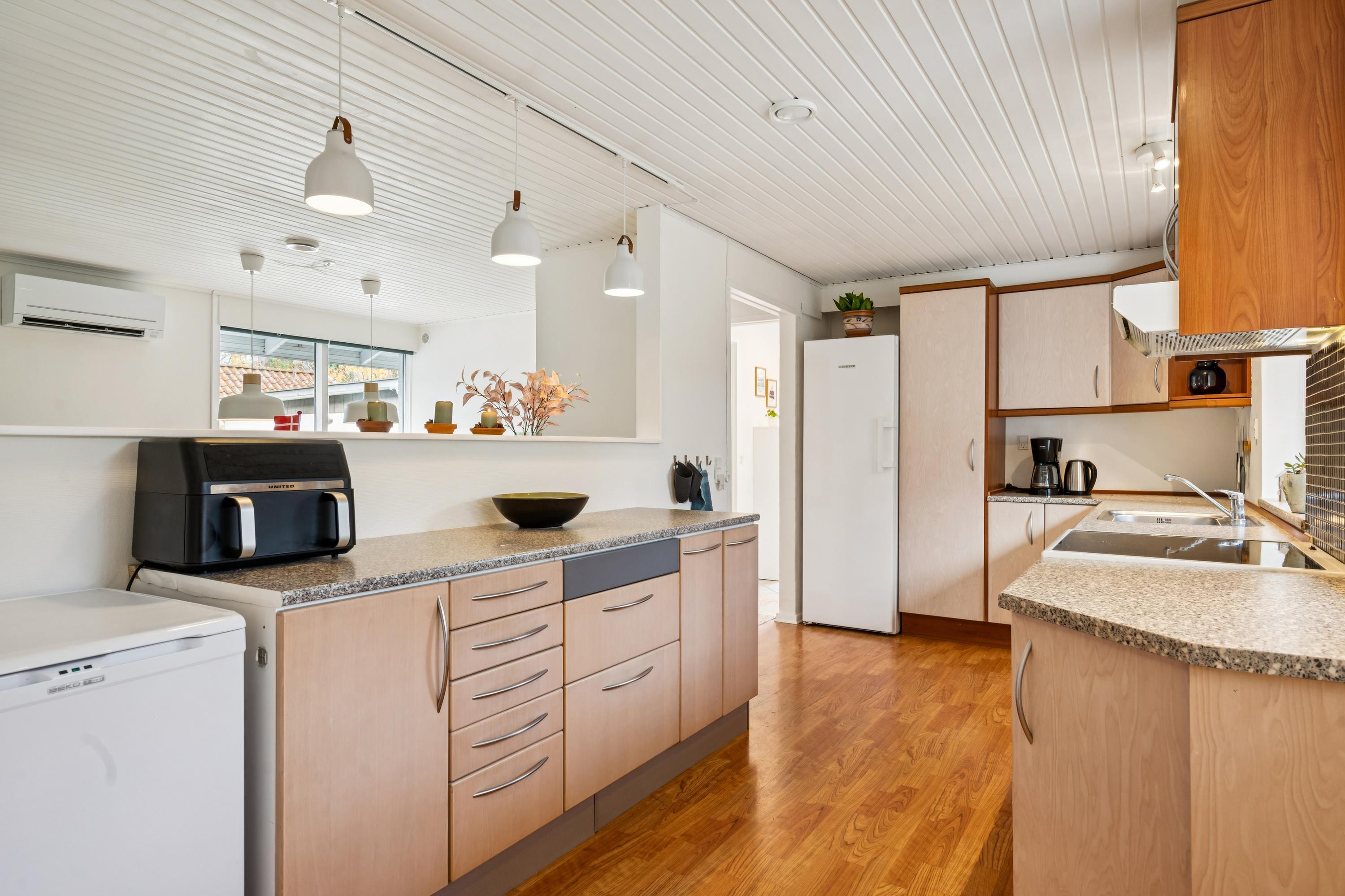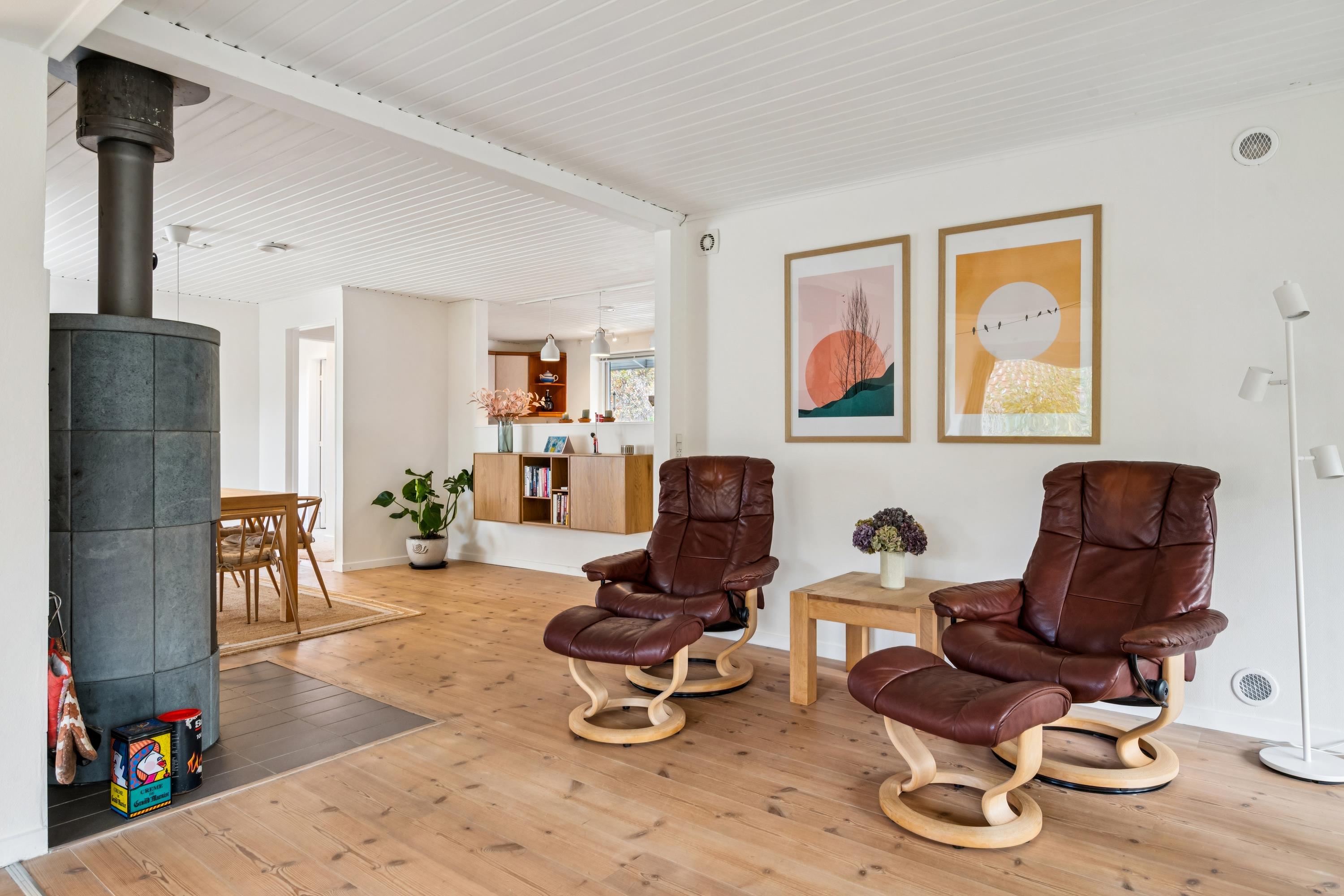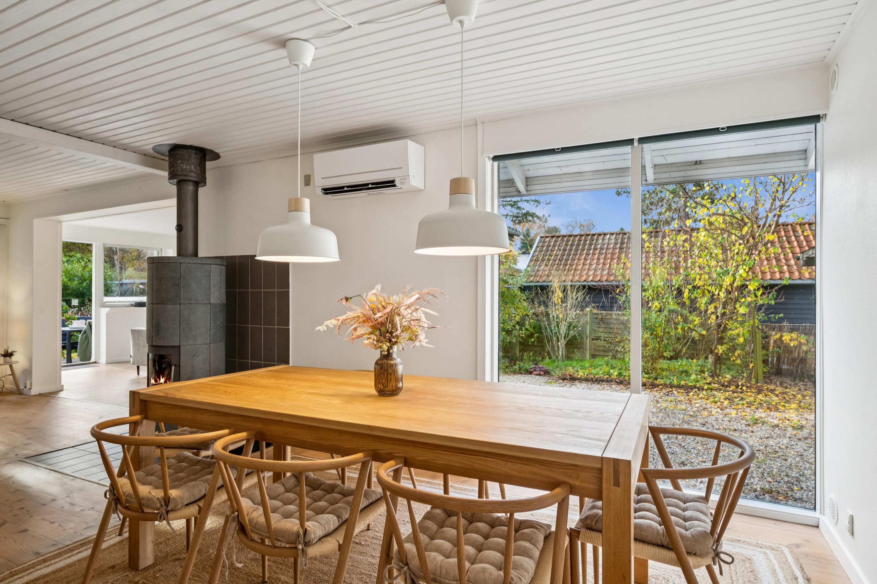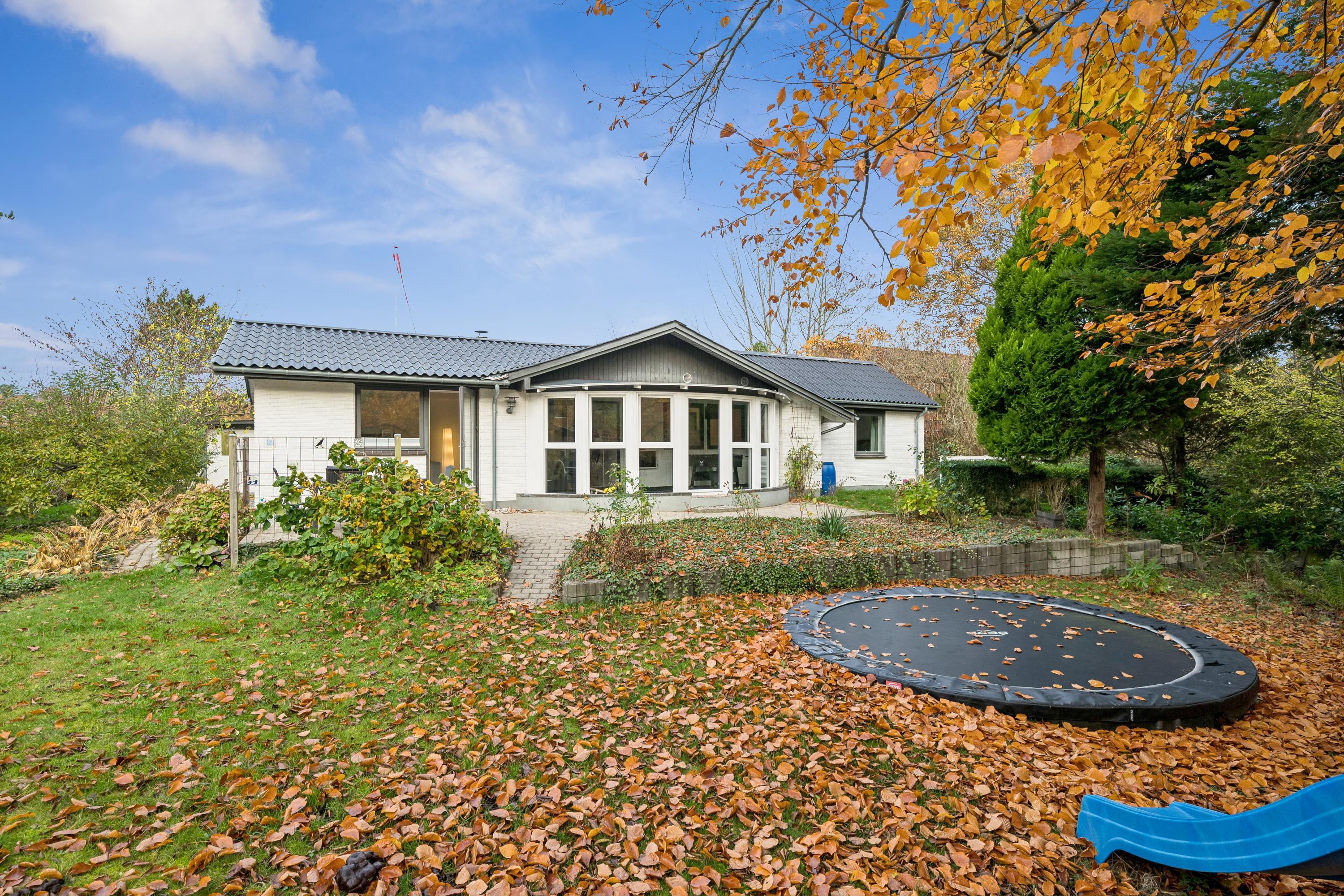 Blot 5 min kørsel fra Ebeltoft finder man dette flotte og rummelige feriehus med plads til den store familie eller to mindre familier. Huset byder på en hyggelig lys og smagfuld indrettet opholdsstue med lækre møbler og varmepumpe. Herfra er der udgang til den dejlige terrasse med havemøbler og den skønne grund. Dejlig spisestue med brændeovn som ligger i forbindelse med det velindrettede og veludstyrede køkken, hvor der b.la. er opvaskemaskine og airfryer. Stort aktivitetsrum med b.la. bordfodbold og dart til de aktive. Dejligt badeværelse med bruseniche og gulvvarme samt gæstetoilet med håndvask. Husets sovepladser fordeler sig i tre hyggelige værelser, heraf et værelse med to køjesenge, et værelse med to enkelt-senge og et værelse med en dobbeltseng. Til de små feriegæster er der en høj barnestol og en barneseng. Der er danske, tyske og nordiske kanaler i huset. Huset er beliggende på en dejlig grund og med flere skønne terrasser så man har mulighed for både morgen og aftensol. Her er der også tænkt på de små feriegæster med trampolin og rutschebane. Et virkeligt skønt feriehus som opfylder alle ønsker om en dejlig ferie. Er man flere familier der gerne vil holde ferie tæt på hinanden, ligger huset ca 100 mtr fra hus 09109.