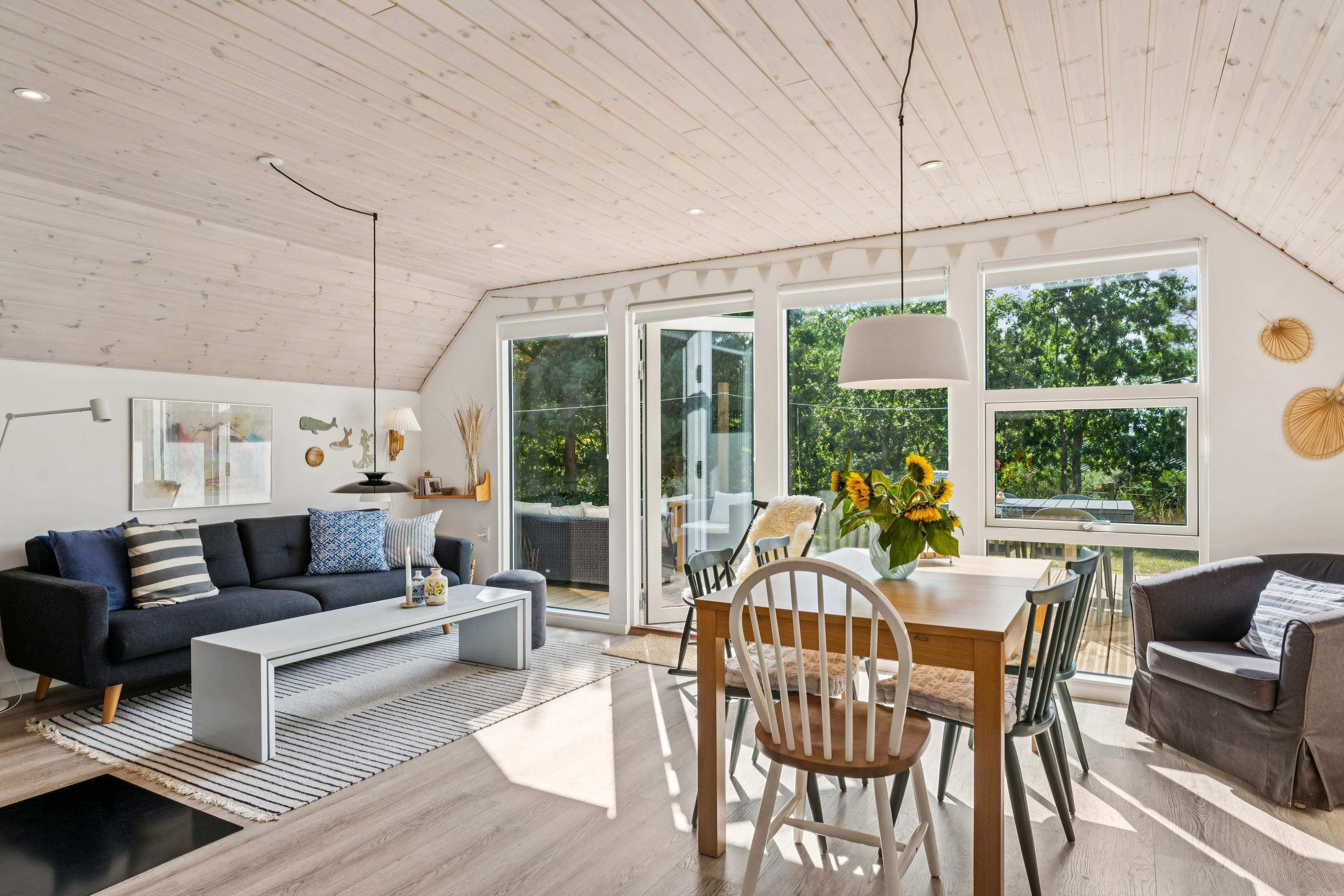 Allerede når man træder ind ad døren, mærker man den ægte sommerhusstemning i dette særdeles hyggelige og nyrenoverede sommerhus. Her finder man en hyggelig og velindrettet stue med b.la. brændeovn og varmepumpe. I forbindelse med stuen finder man det mindre men velfungerende køkken. Fra stuen er der udgang til en stor terrasse med gode havemøbler. Flot badeværelse med en stor bruseniche. Husets sovepladser fordeler sig i to hyggelige soveværelser, heraf et værelse med dobbeltseng og et værelse med en enkeltseng. Desuden er der to sovepladser på gode madrasser på hemsen. TV foregår via Chromecast. Huset er beliggende på en skøn naturgrund hvoraf en del af grunden er udlagt til ”vild med vilje ” og med to hyggelige terrasser.