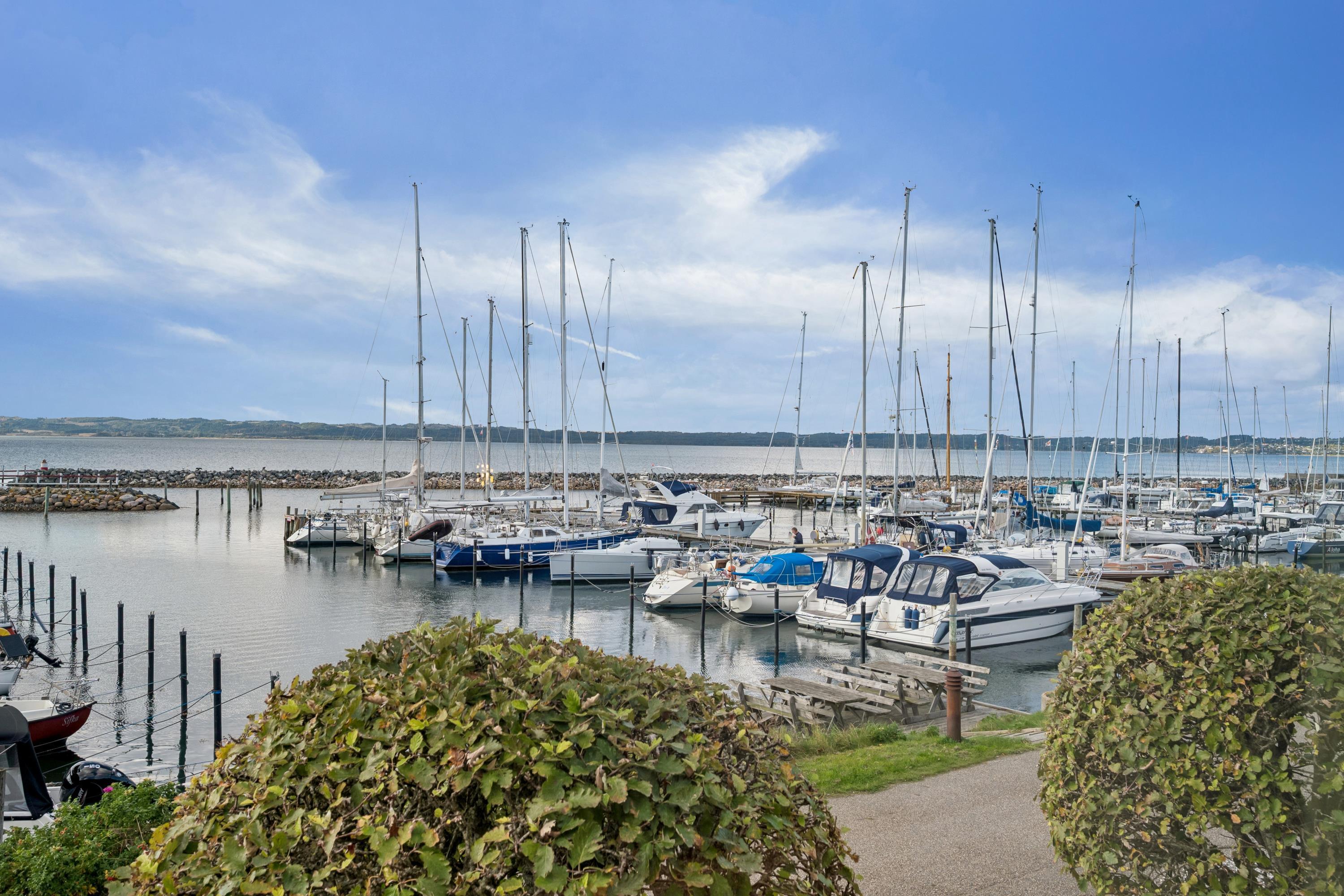 Flot rækkehus på Skudehavnen med udsigt over lystbådehavnen og kort afstand til Ebeltofts gamle bydel.