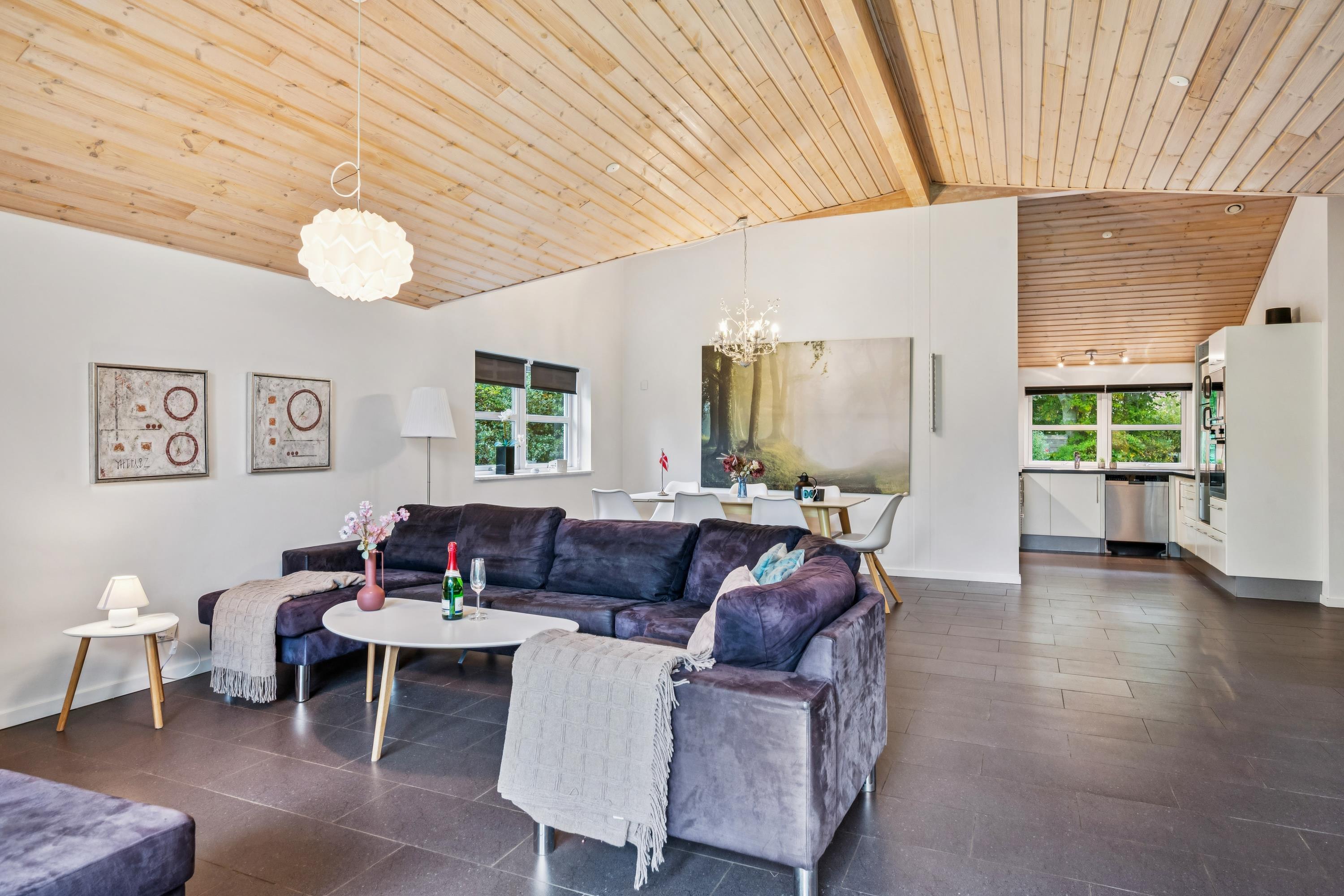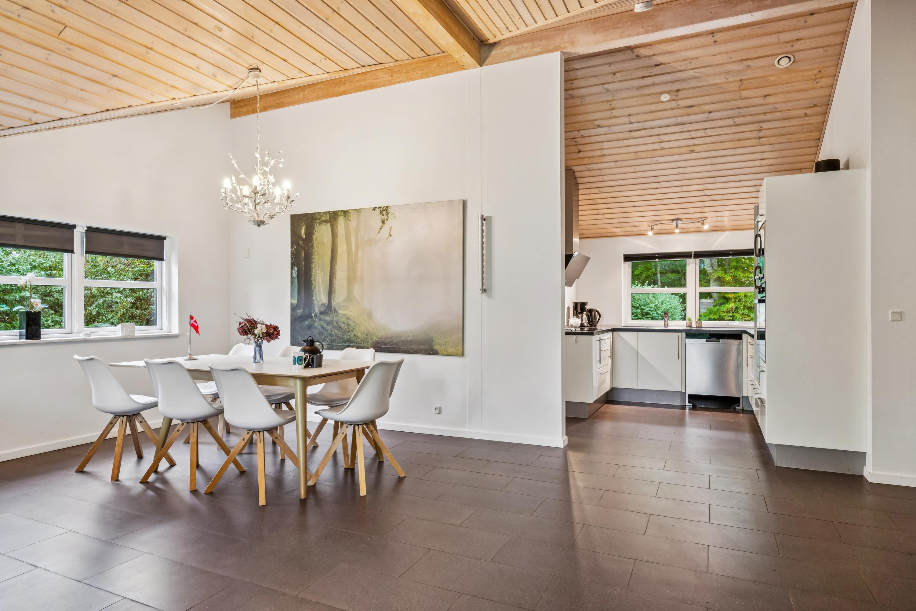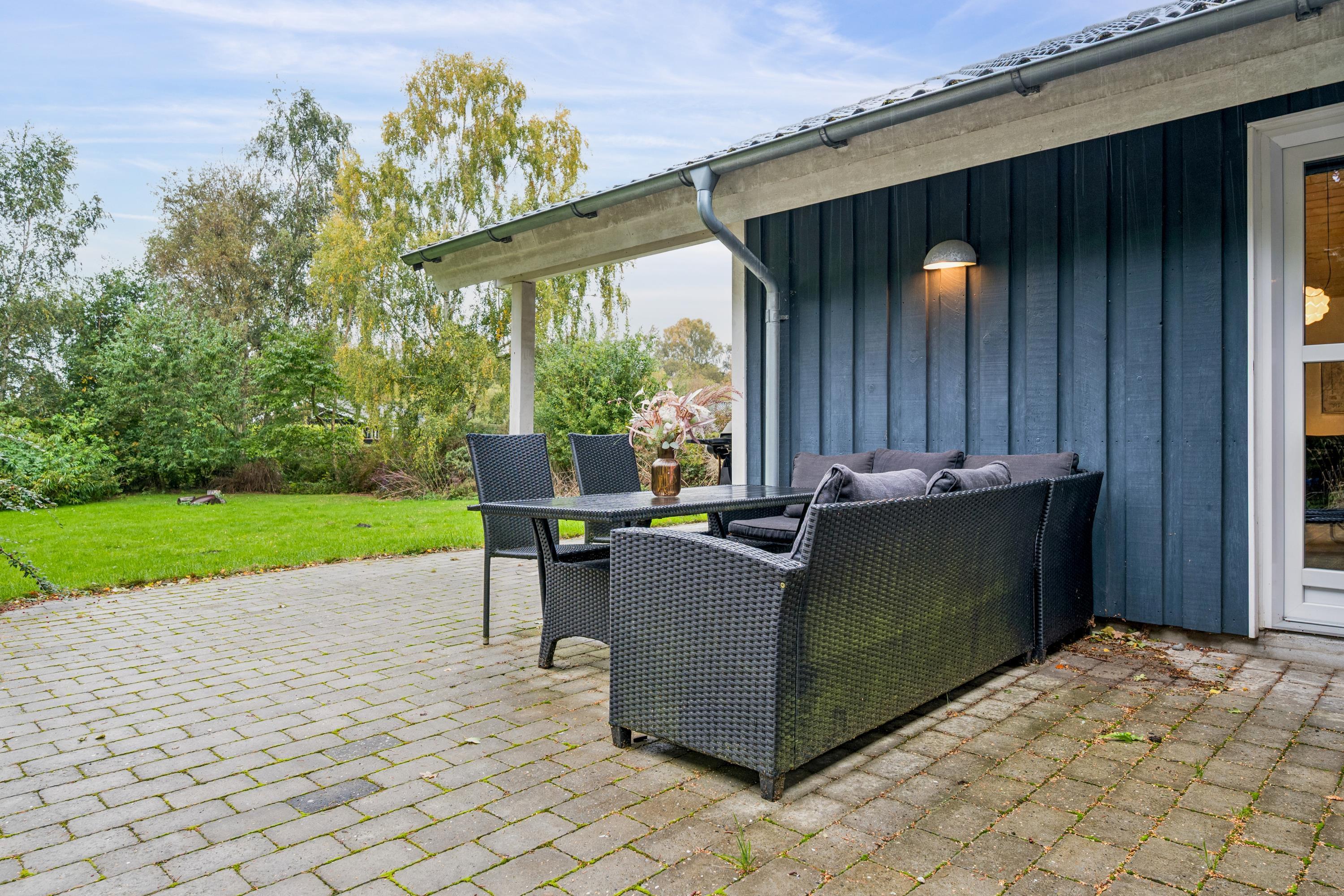 Ikke langt fra Ebeltoft finder man dette hyggelige og velholdte hus. Her finder man en stor og lys stue, møbleret med gode møbler og hvorfra der er udgang til en god overdækket terrasse med havemøbler. I forbindelse med stuen ligger det flotte køkken med b.la. opvaskemaskine og en god spiseafdeling. Flot badeværelse med bruseniche og spabad. Husets sovepladser finder man i tre gode værelser, heraf et værelse med en køjeseng og to værelser med dobbeltsenge. Huset er beliggende på en dejlig grund med stor græsplæne, velegnet til leg og udendørs aktiviteter. Her er flere gode terrasser med havemøbler.