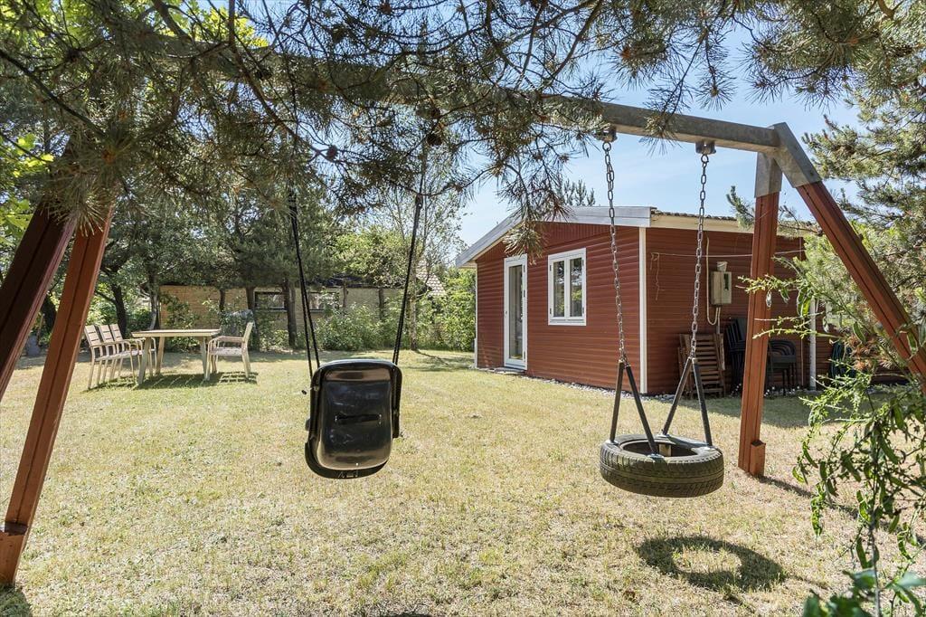 Udendørs venter en dejlig have, hvor både børn og hund kan boltre sig trygt, mens de voksne nyder solen på terrassen med en god kop kaffe. Der er både havemøbler, grill og fred og ro til afslapning, og med beliggenheden på en stille vej kan I virkelig trække vejret helt ned i maven. Den store træterrasse indbyder til mange timers udeliv – måske med en bog i skyggen, en god frokost i solen eller en aften under stjernerne.