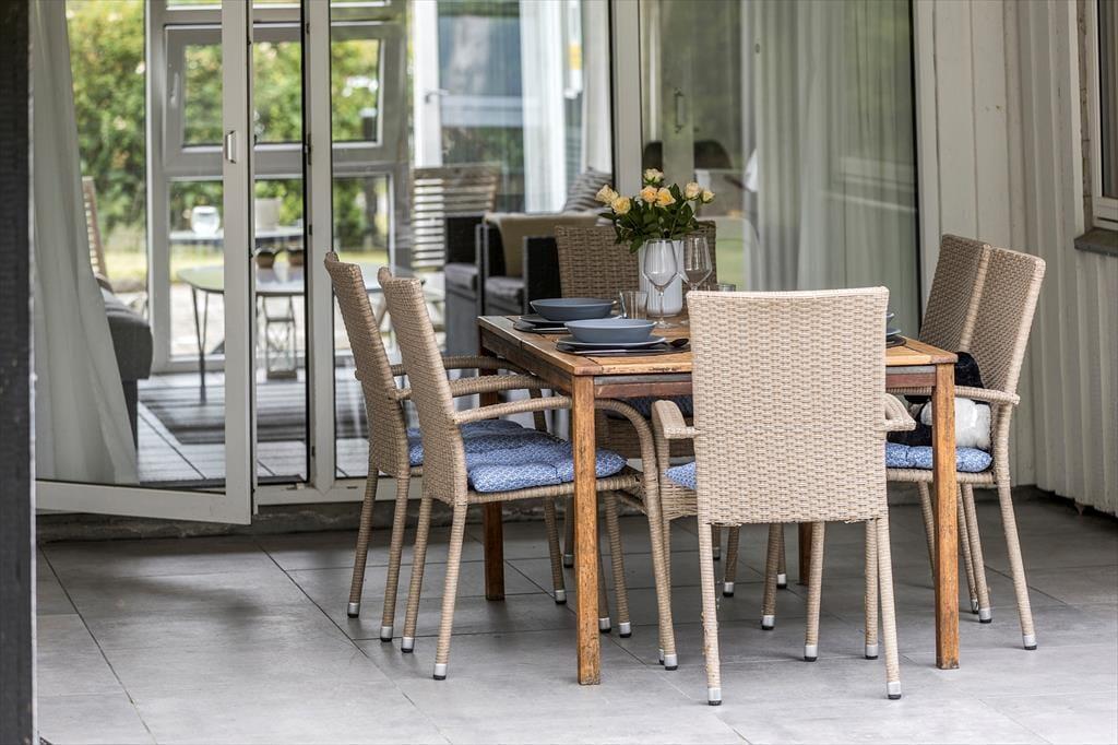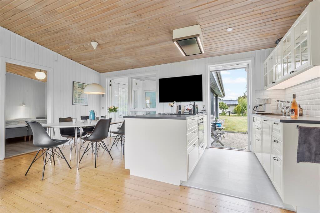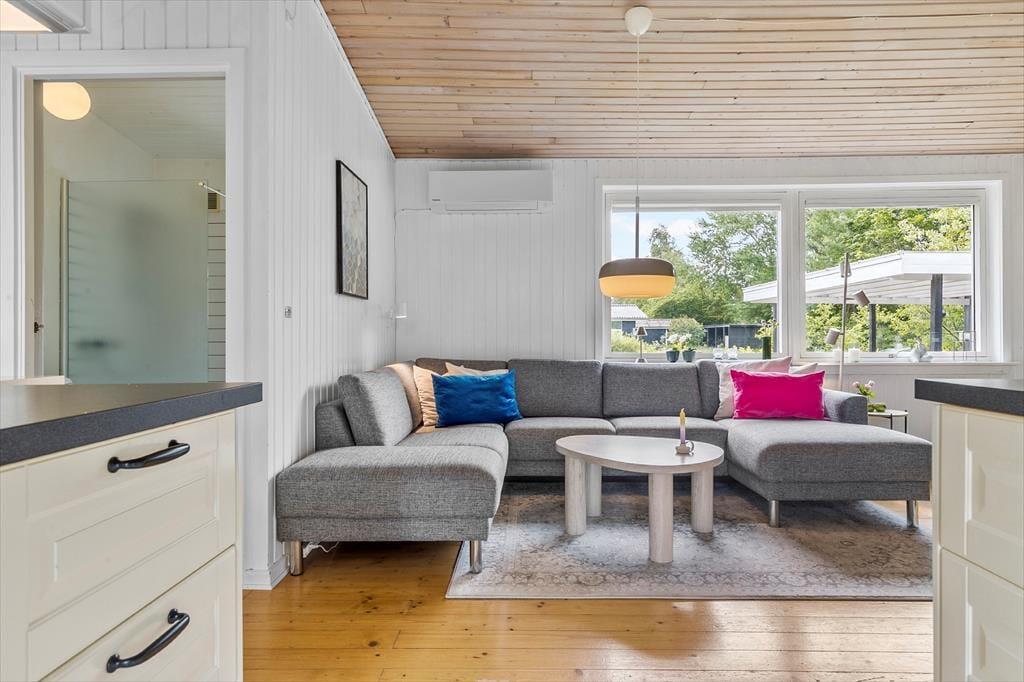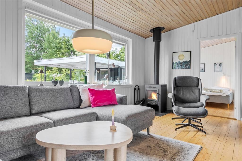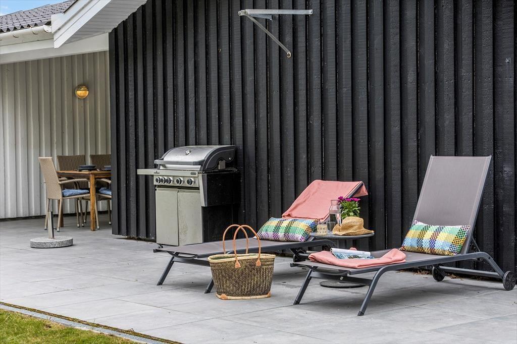 Udenfor venter en stor, lukket have på 1.200 m², hvor børnene kan lege frit, og hunden kan boltre sig trygt. Terrassen er udstyret med komfortable havemøbler og en grill, perfekt til lange sommeraftener under åben himmel. Med kun 300 meter til stranden og kysten er det nemt at tage en spontan tur til vandet for at bade, samle skaller eller nyde solnedgangen. Den nærliggende natur inviterer til gåture, cykelture og picnic i det fri, så I virkelig kan nyde livet udenfor i de smukke omgivelser.