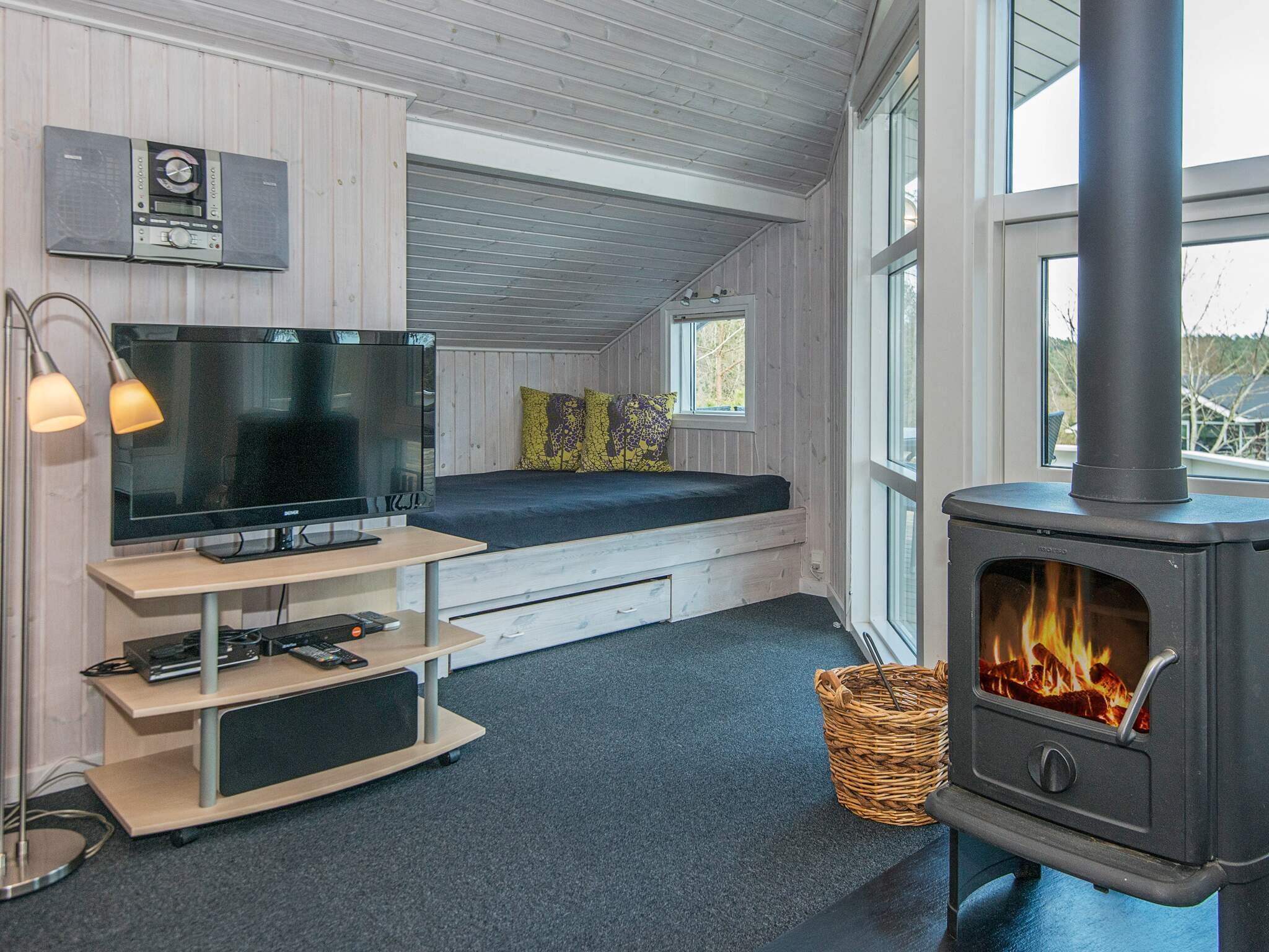 1 Opholdsstue: Brændeovn, Chromecast, tv, Bluetooth, høj stol