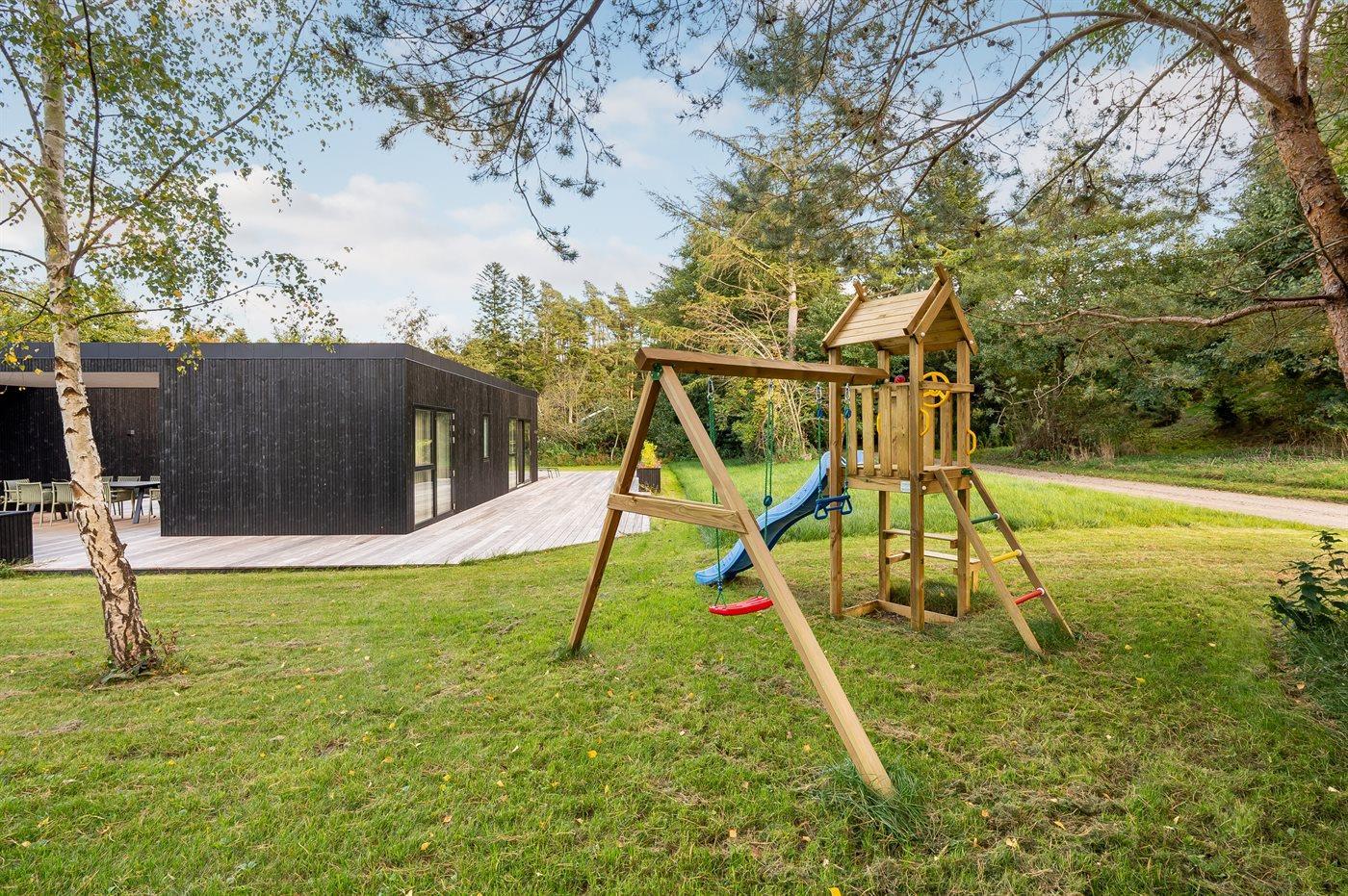 Nybygget luksussommerhus i Ebeltoft med stor terrasse og indendørs spa, perfekt til familier og vennegrupper.