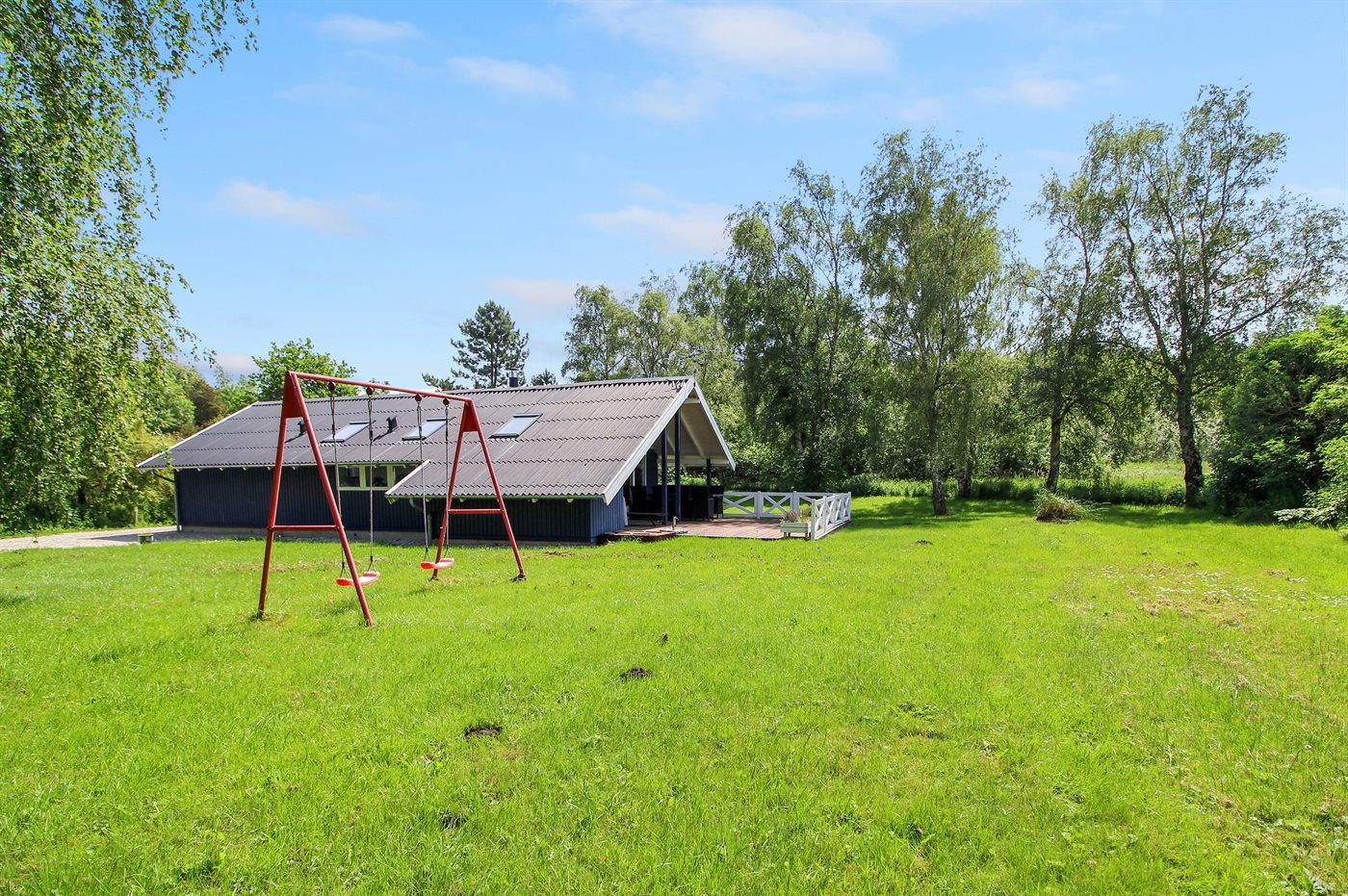 Ferieboligen er beliggende på en 1700 m² stor naturgrund. Der er 700 m til havet. Nærmeste forretning er beliggende i en afstand af 800 m. Til ferieboligen hører 12 m² terrasseareal. Desuden er der 12 m² overdækket terrasse. Der er redskabsrum. Gynge. Sandkasse. Parkering ved ferieboligen.