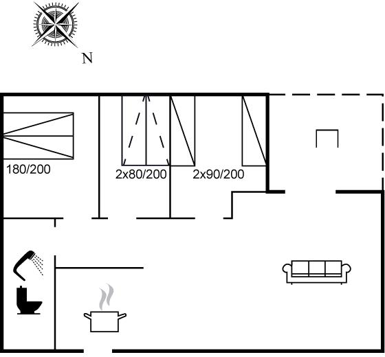 Der er i alt 3 soveværelser. Sovepladserne fordeler sig på: 2 sovepladser i dobbeltseng. 2 sovepladser i enkeltsenge. 2 sovepladser i sovesofa (dobbelt).