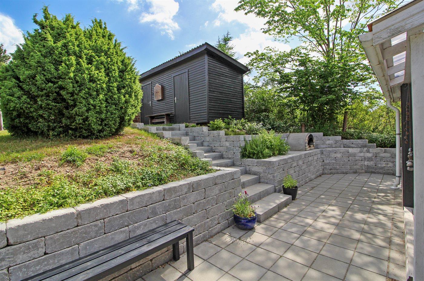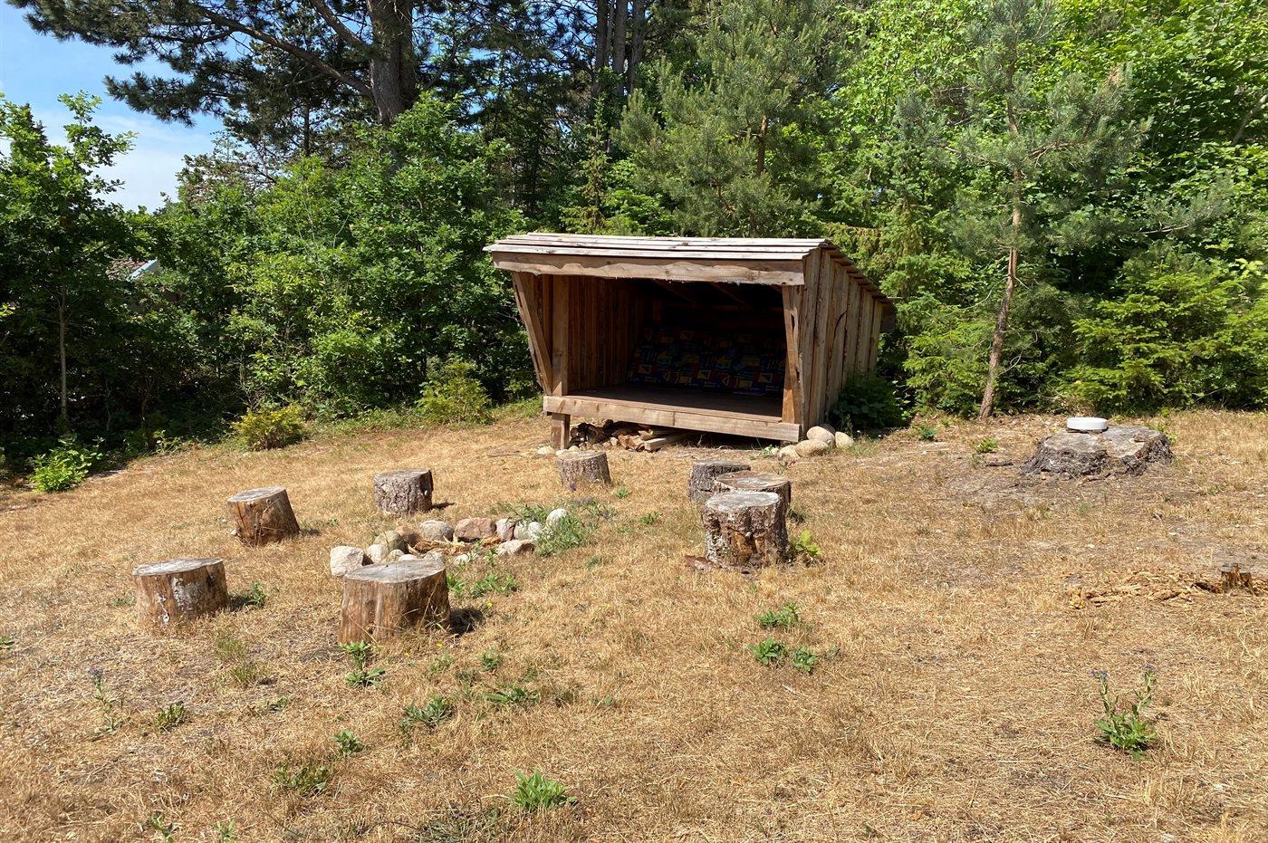 Huset ligger på en skøn grund, hvor der er opsat et shelter, som inviterer til en overnatning i det fri (husk at medbringe sovepose og liggeunderlag).