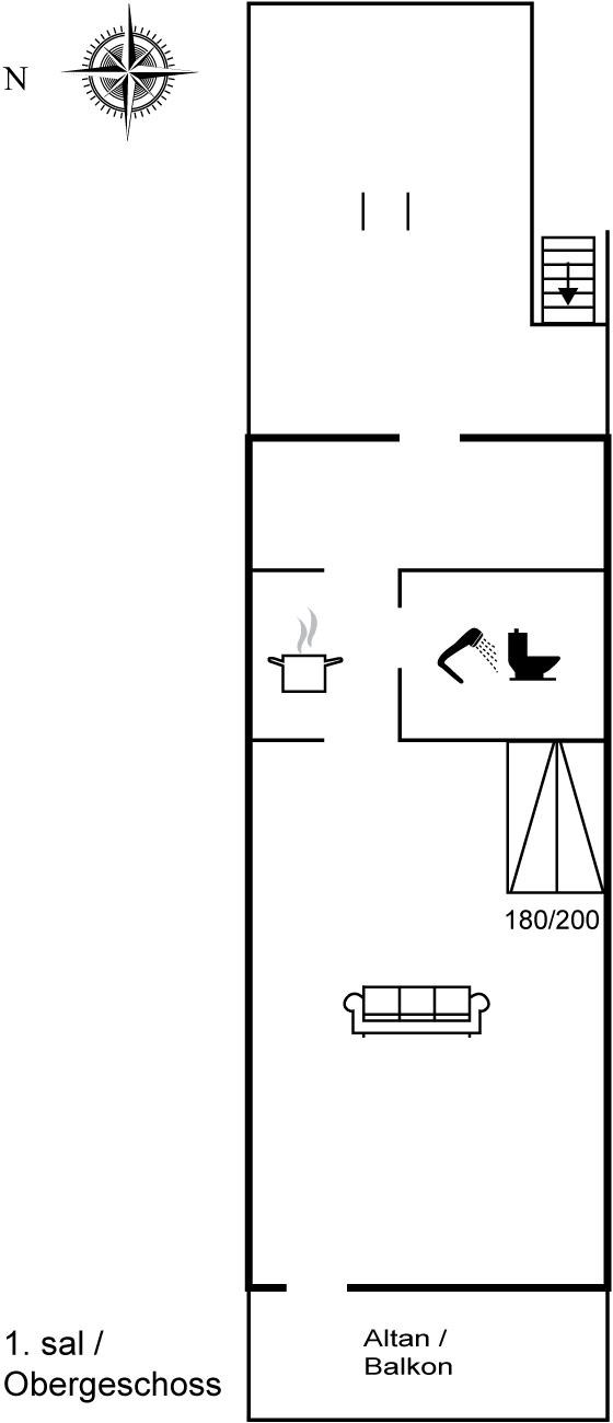 Der er 20 m til havet. Nærmeste forretning er beliggende i en afstand af 100 m. Til ferieboligen hører åbent terrasseareal. Udgang til altan. Parkering ved ferieboligen.