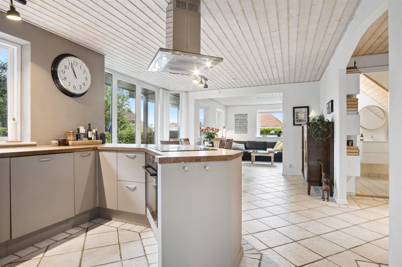 Køkkenet er udstyret med 1 køleskab. Der er 4 induktionskogeplader, varmluftovn, mikrobølgeovn samt opvaskemaskine.