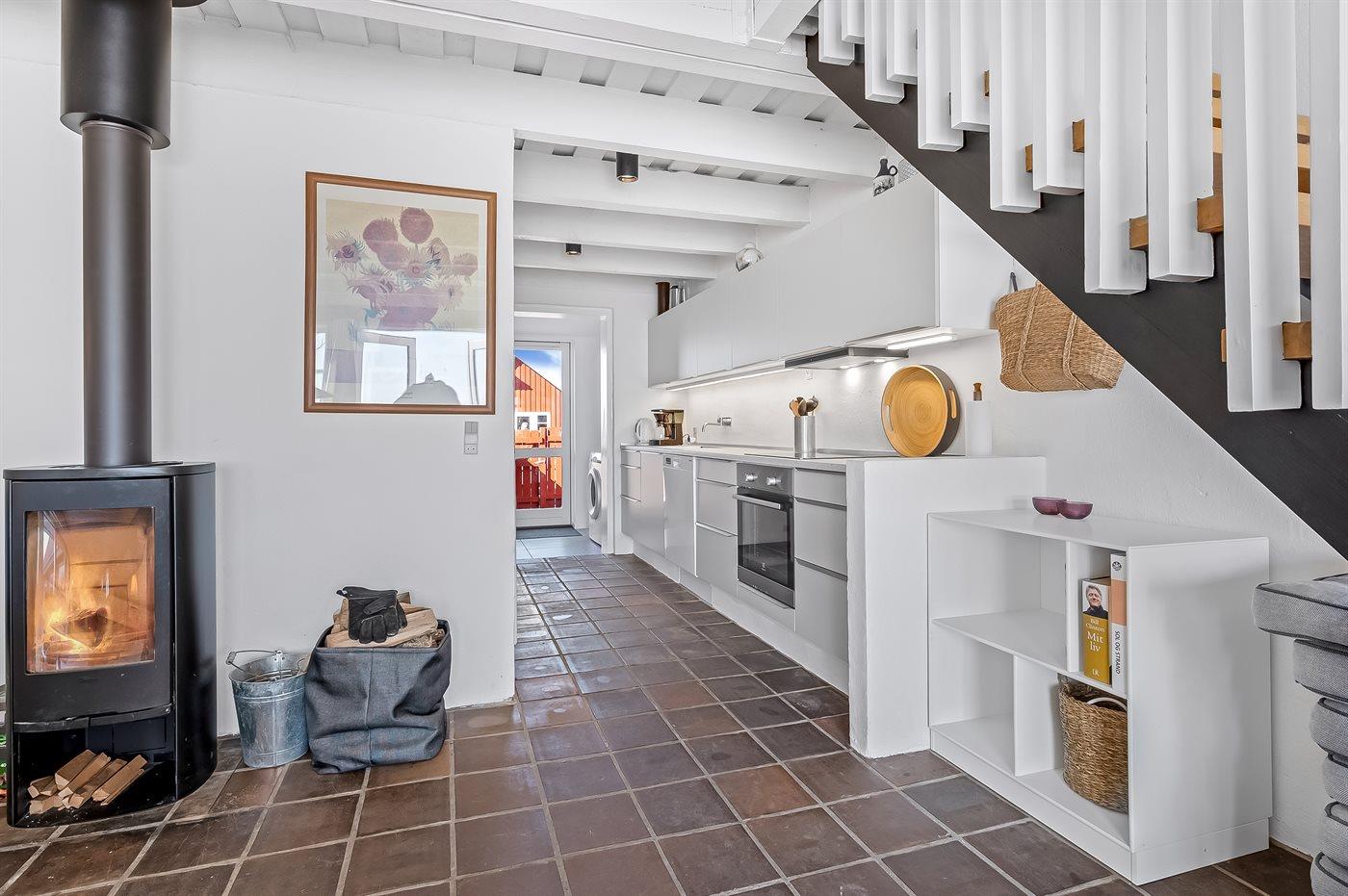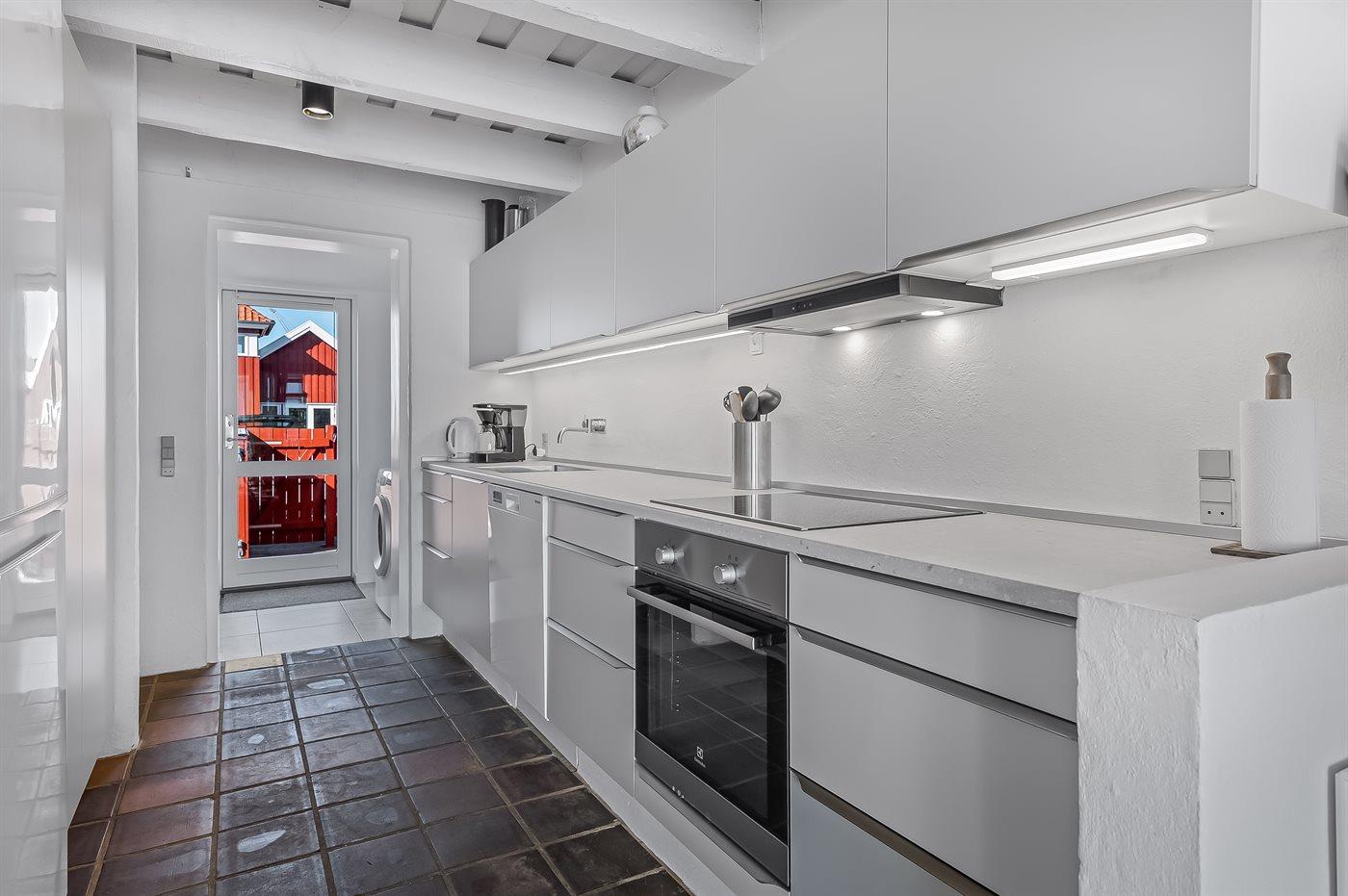Køkkenet er udstyret med 1 køleskab. Der er 4 keramiske kogeplader, varmluftovn samt opvaskemaskine.