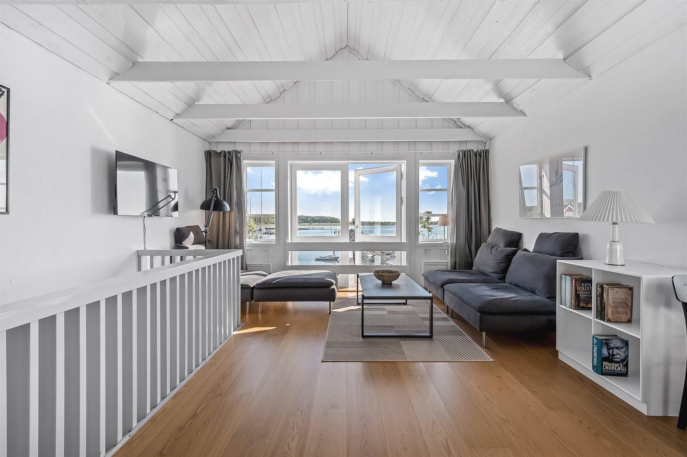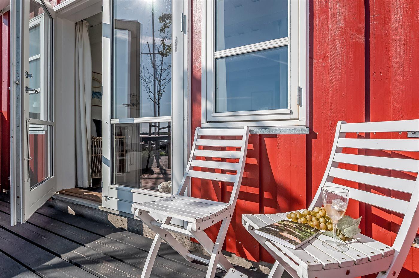 Fra huset kan du nyde en betagende udsigt over vandet og det livlige havnemiljø fra 3 himmelretninger. Den private, lukkede terrasse er et fredeligt fristed, hvor du kan sidde og slappe af, nyde en god bog eller et glas vin, mens du indånder den friske havluft.