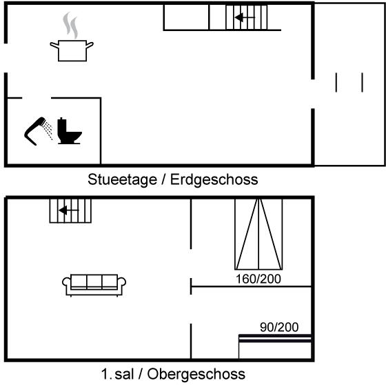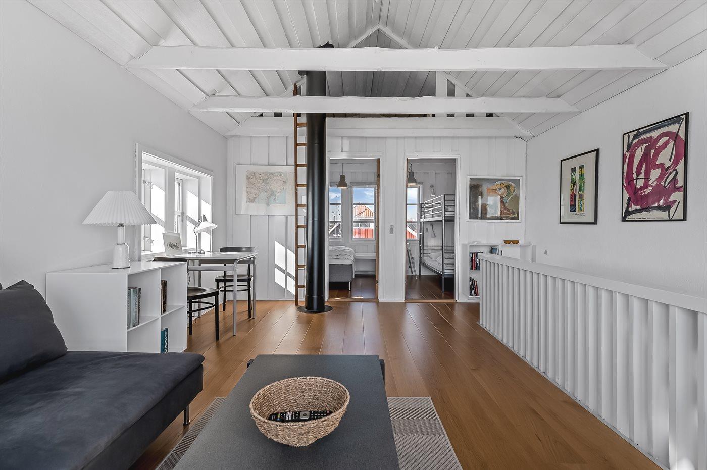 Der er i alt 2 soveværelser. Sovepladserne fordeler sig på: 2 sovepladser i dobbeltseng. 2 sovepladser i køjeseng. 2 sovepladser på madrasser. 2 af disse sovepladser befinder sig på husets hems.